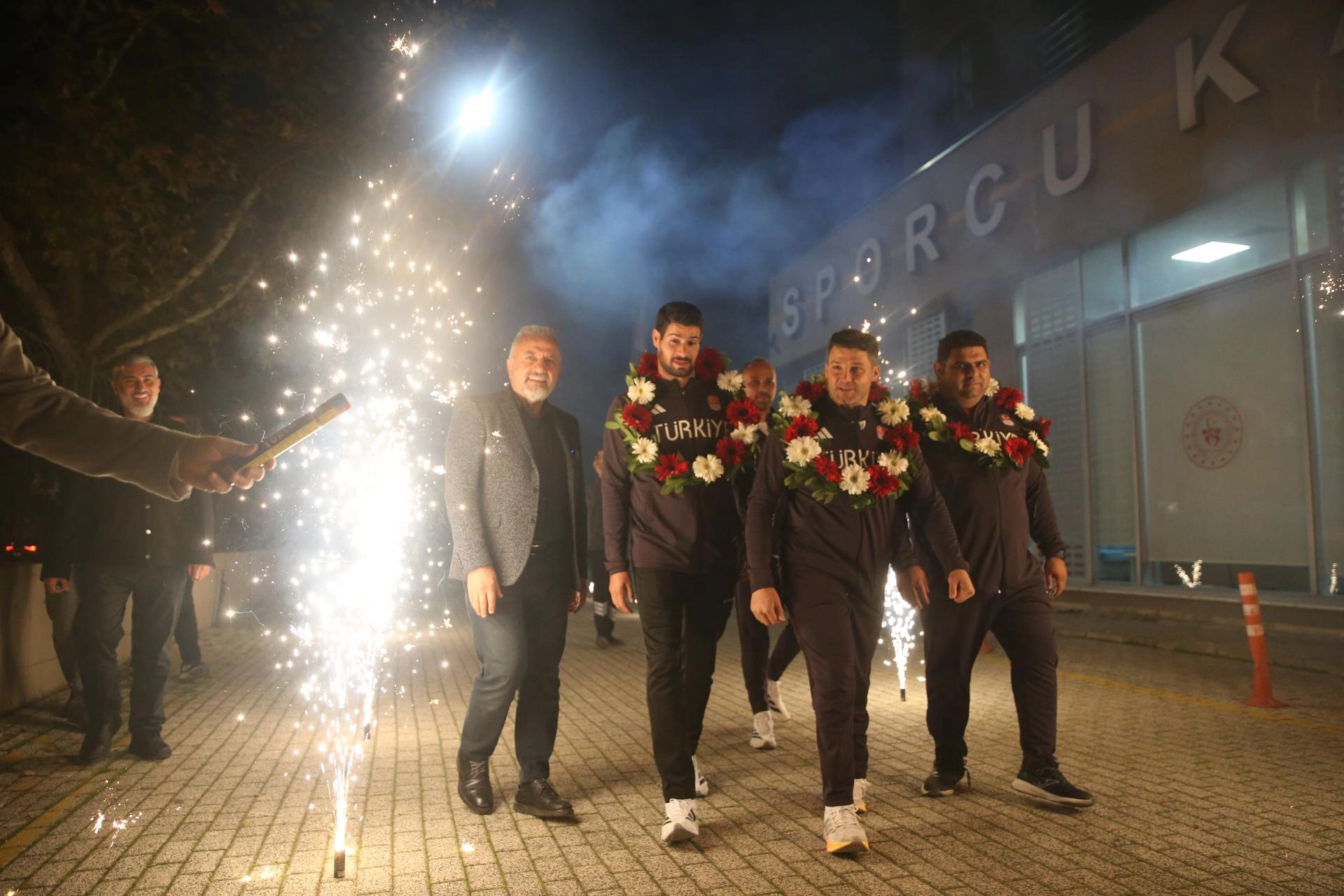 Başarılı sporcular, bünyesinde faaliyet gösterdikleri Bursagücü Spor Kulübü yöneticileri ve ailelerince meşalelerle karşıladı.