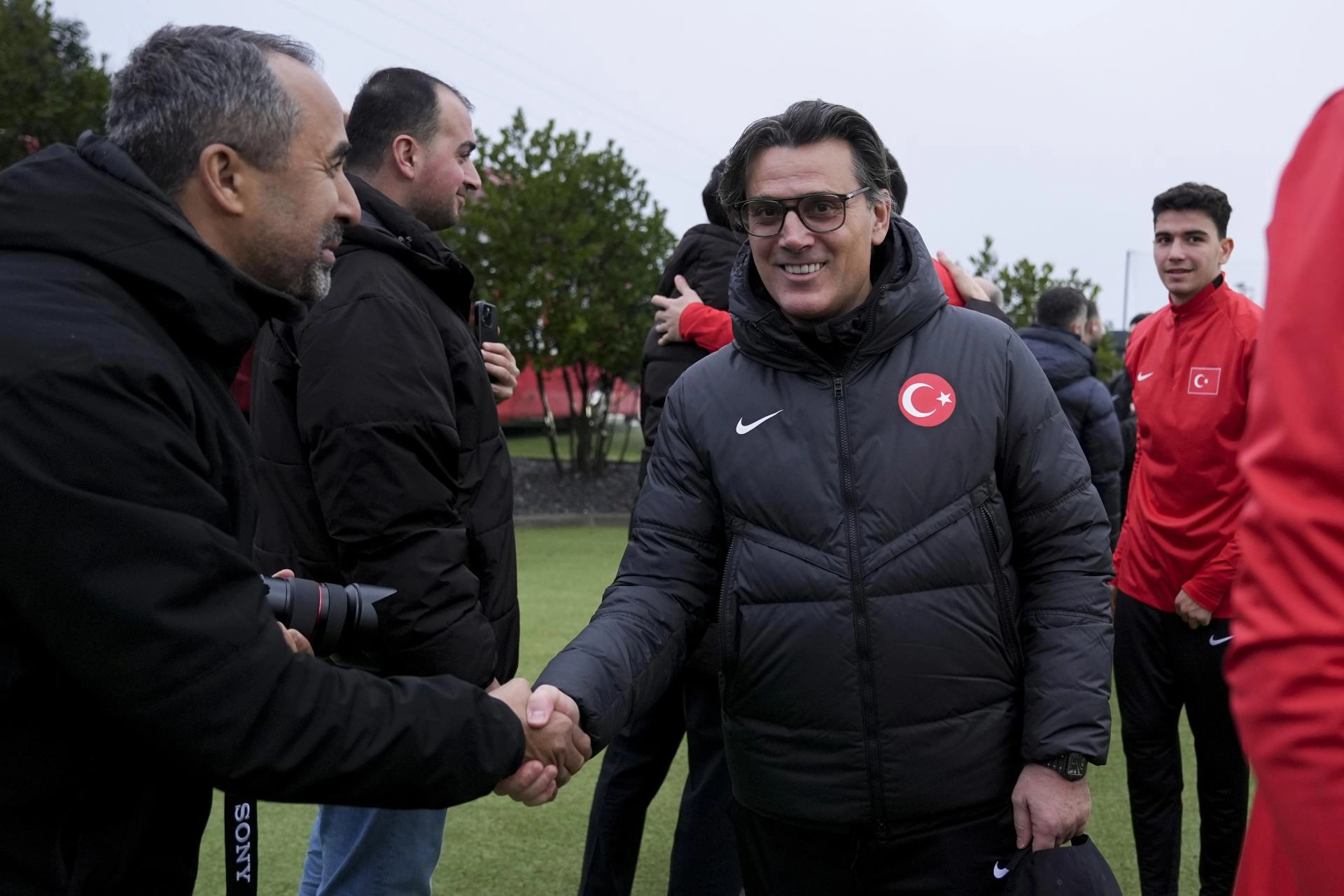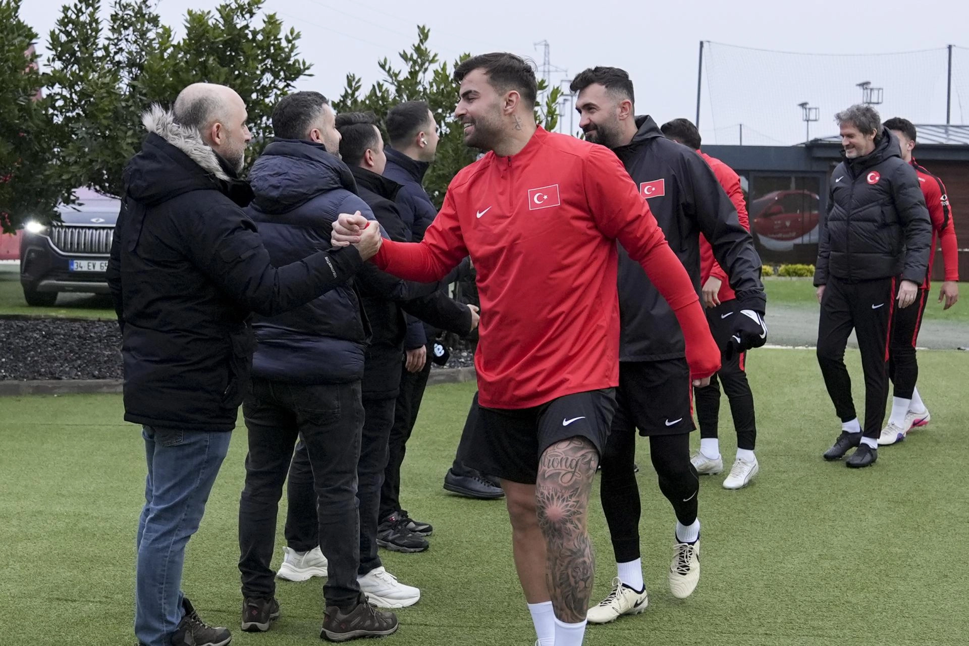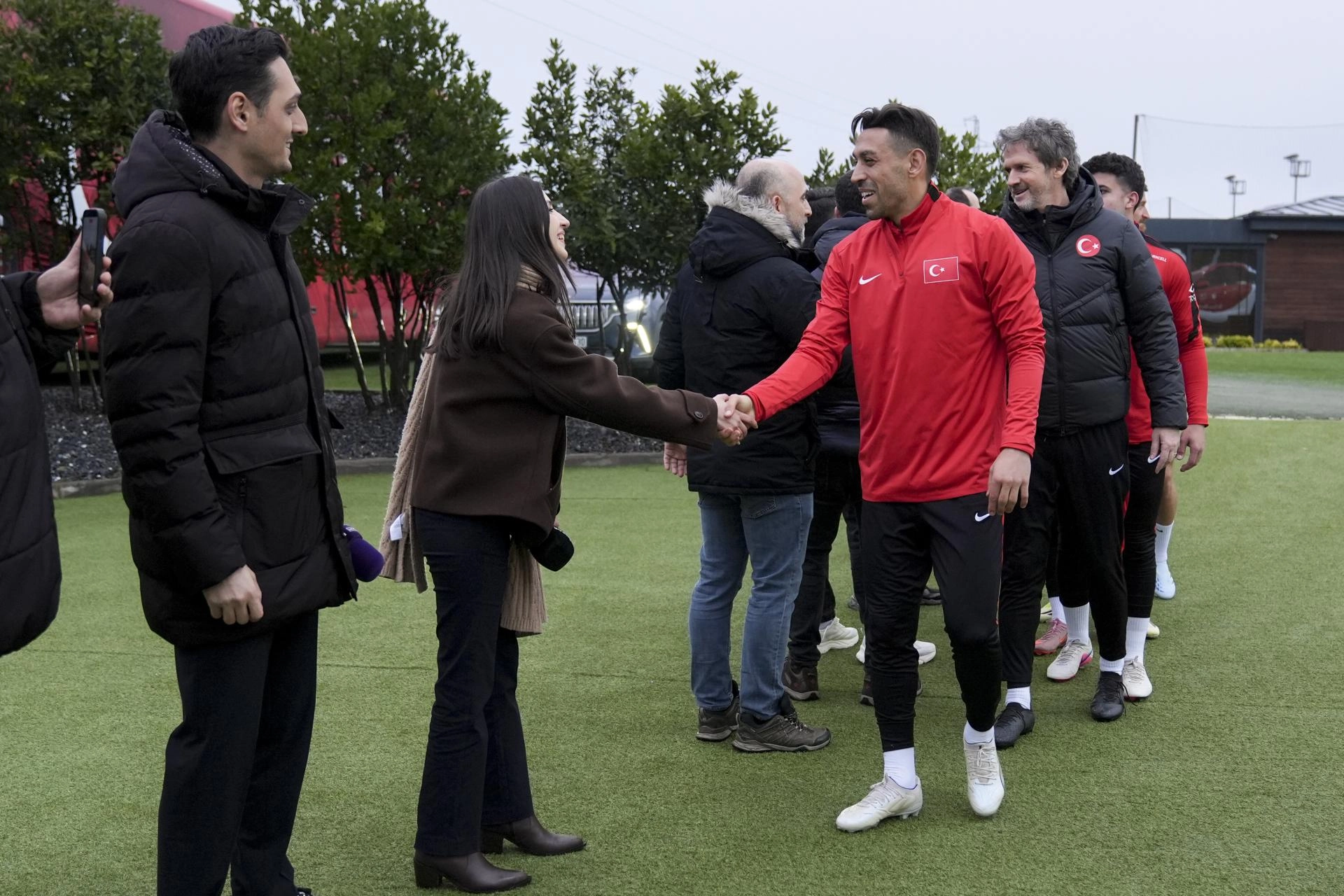 Antrenman öncesi ay-yıldızlı oyuncular, idmanı takip eden basın mensuplarıyla bayramlaştı.