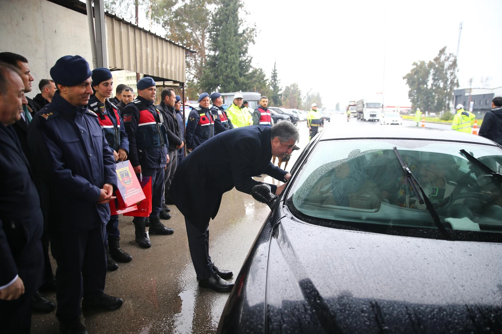 İl Emniyet Müdürü Ahmet Hakan Arıkan ve İl Jandarma Komutanı Coşkun Sel'in eşlik ettiği Vali Yavuz, Adana-Mersin kara yolunda denetim yapan ekiplerle bir araya geldi.