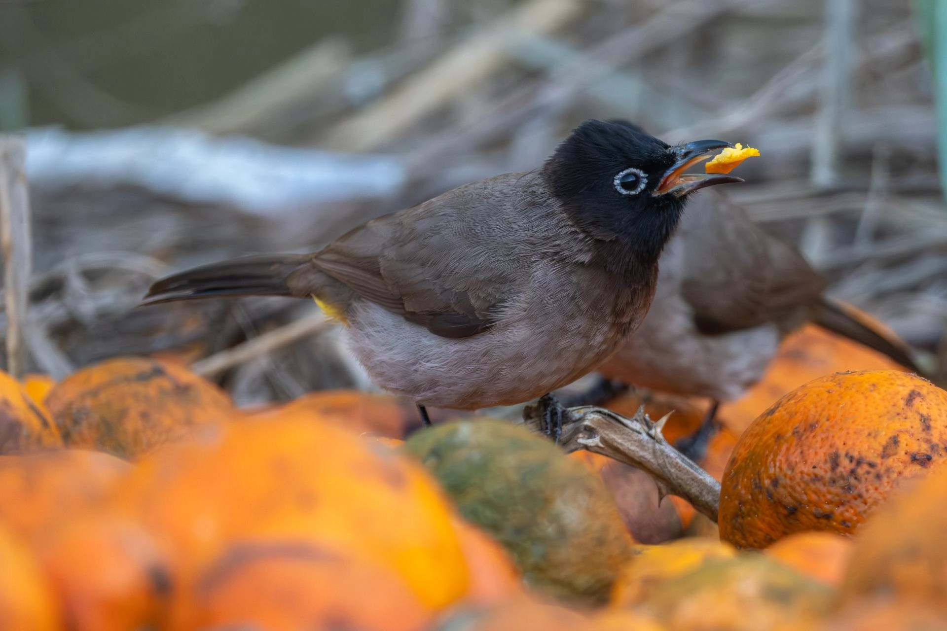 Hasat sırasında ağaçlardan düşen veya çürük olduğu için atılan meyveler, Arap bülbülleri için besin kaynağı oldu.