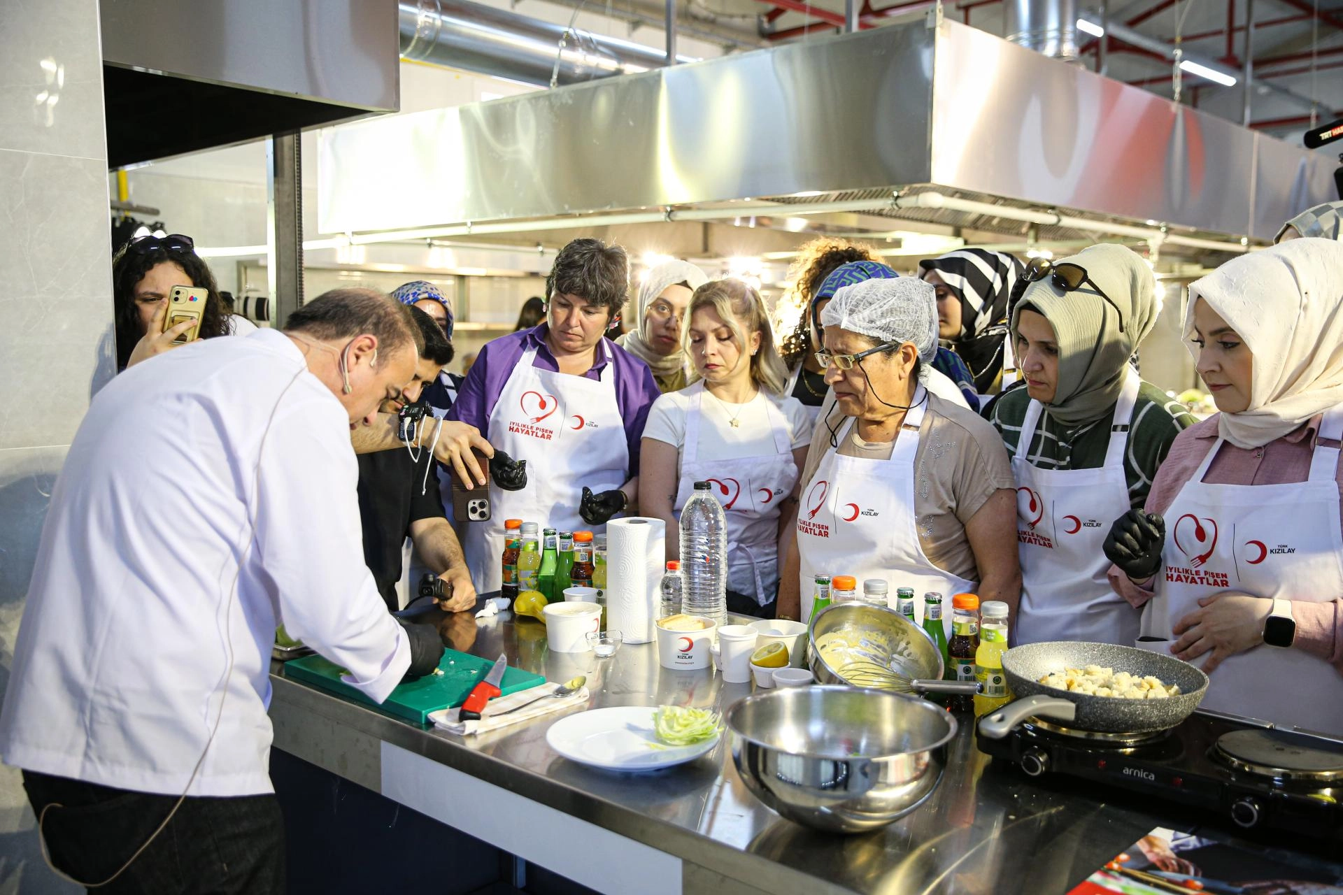 Kızılay Afet Merkezi'ndeki Fatma-Arif Zaloğlu Aşevi'nde organize edilen eğitime, 6 Şubat 2023'te meydana gelen depremlerden etkilenen 20 kadın katıldı.
