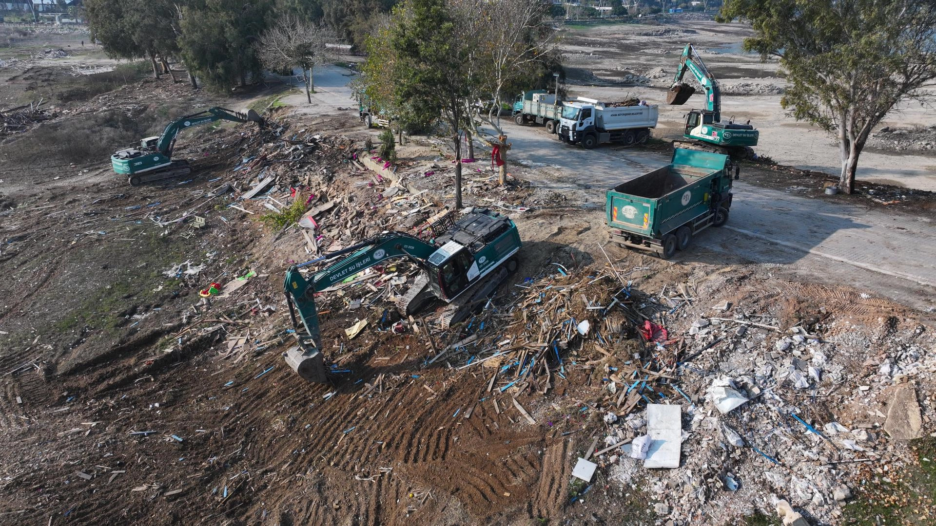 ADANA (AA) - Adana'da yıkımı tamamlanan Seyhan Baraj Gölü kıyısındaki kaçak yapıların enkaz kaldırma çalışmaları sürüyor.