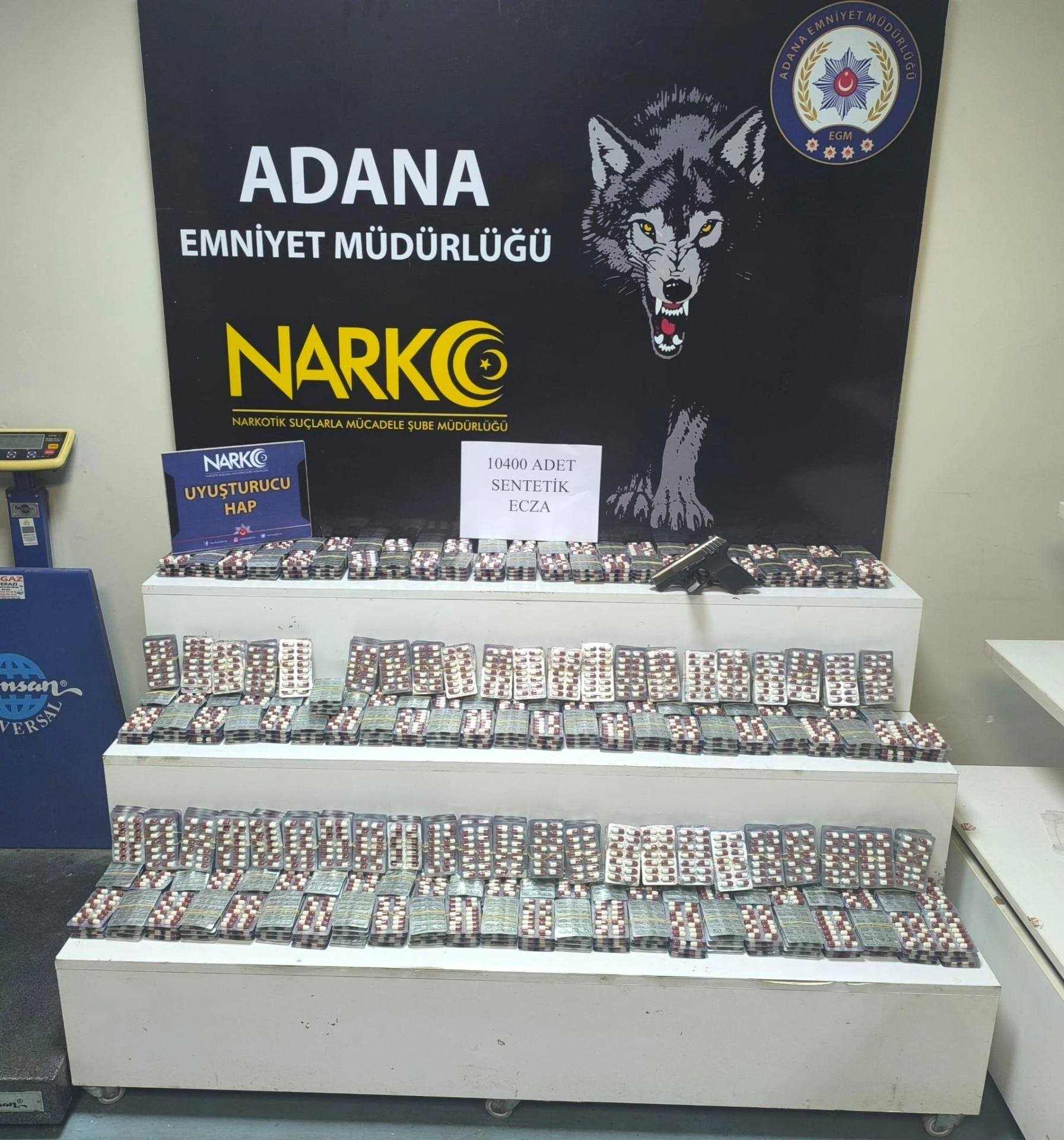 Söz konusu adreslerde yapılan aramalarda, 10 bin 400 sentetik ecza, bir miktar sentetik uyuşturucu ham maddesi ile sentetik uyuşturucu, 41 uyuşturucu hap ile ruhsatsız tüfek ve 4 tabanca ele geçirildi.