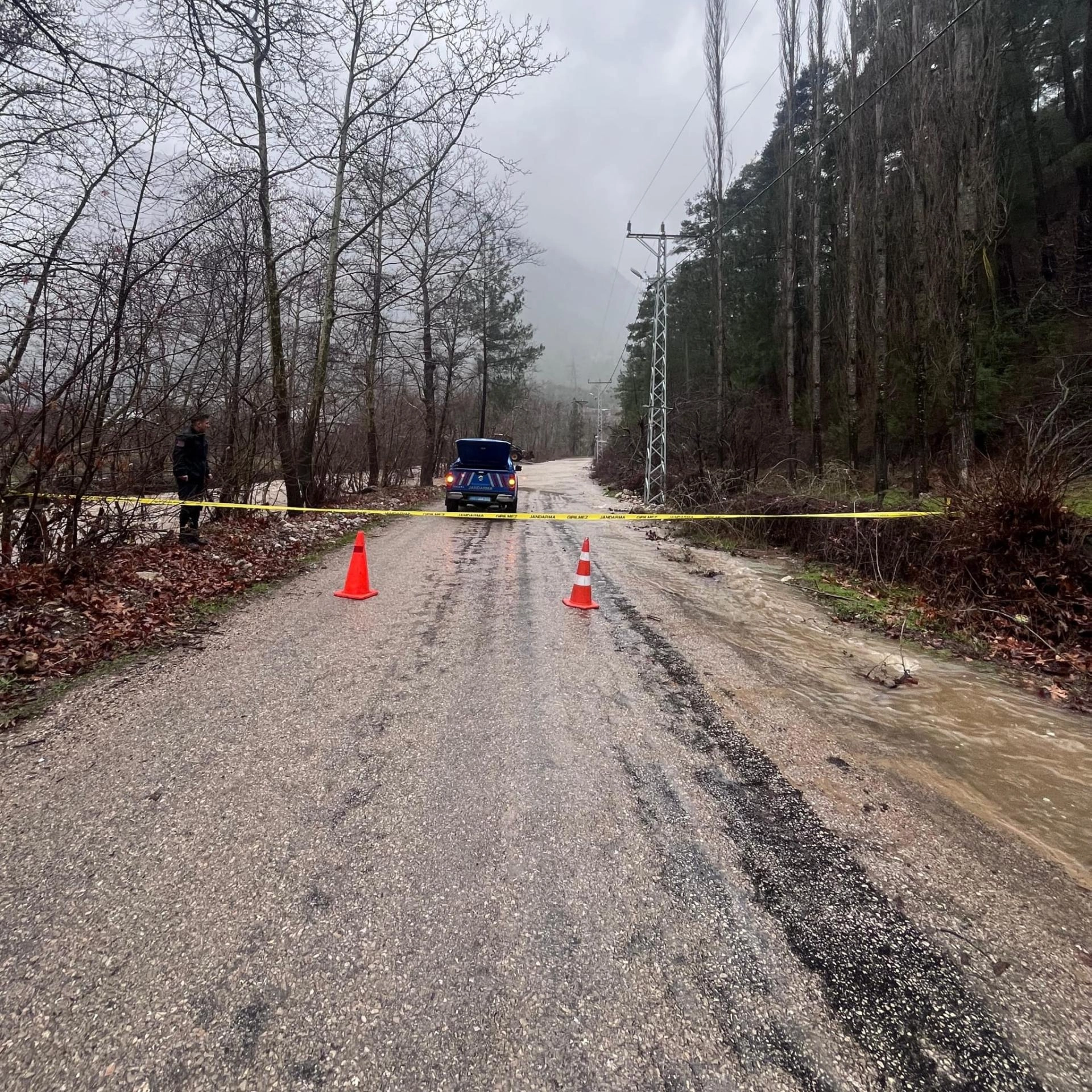 Jandarma ekipleri, araçların geçmemesi için yola bariyer çekti.