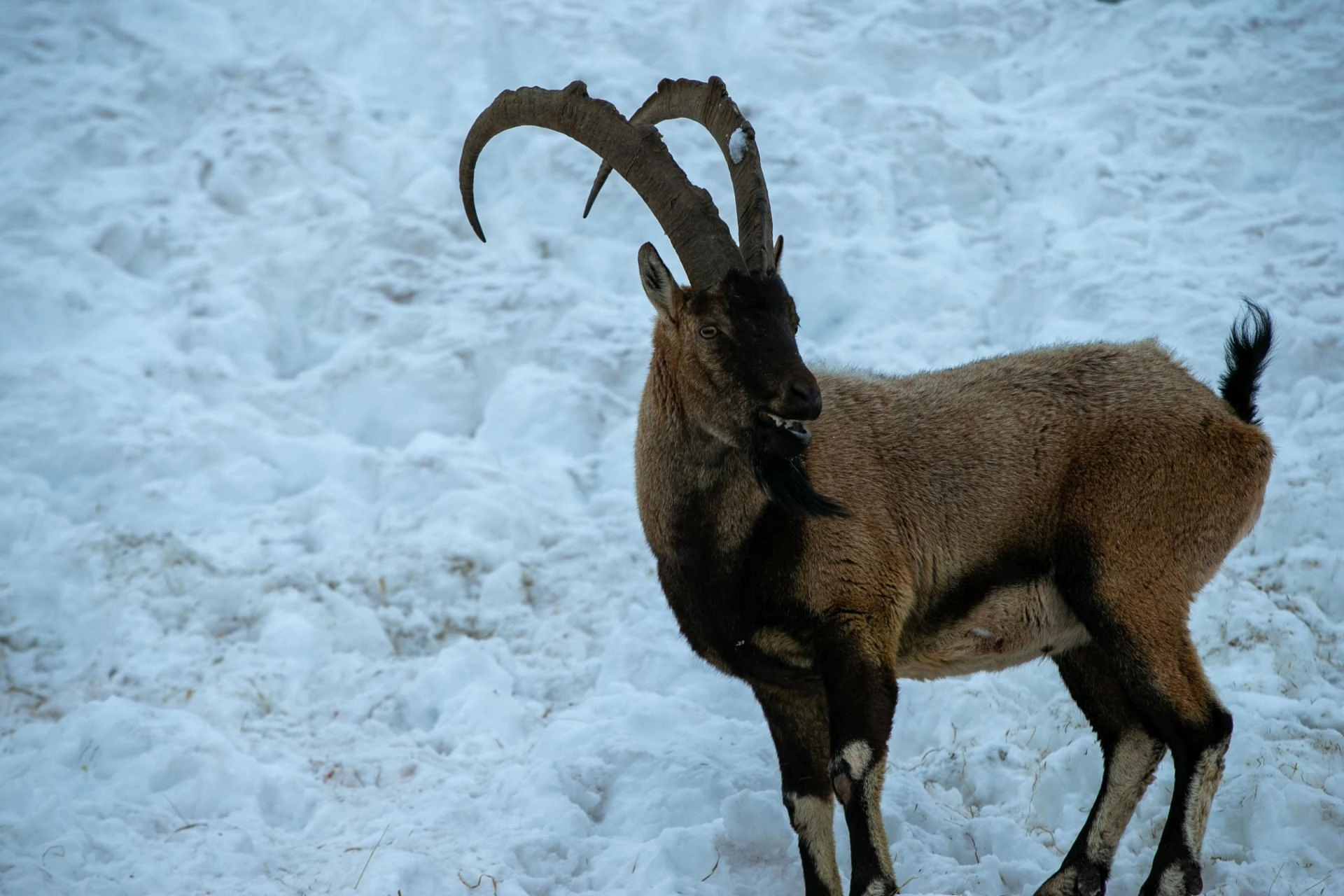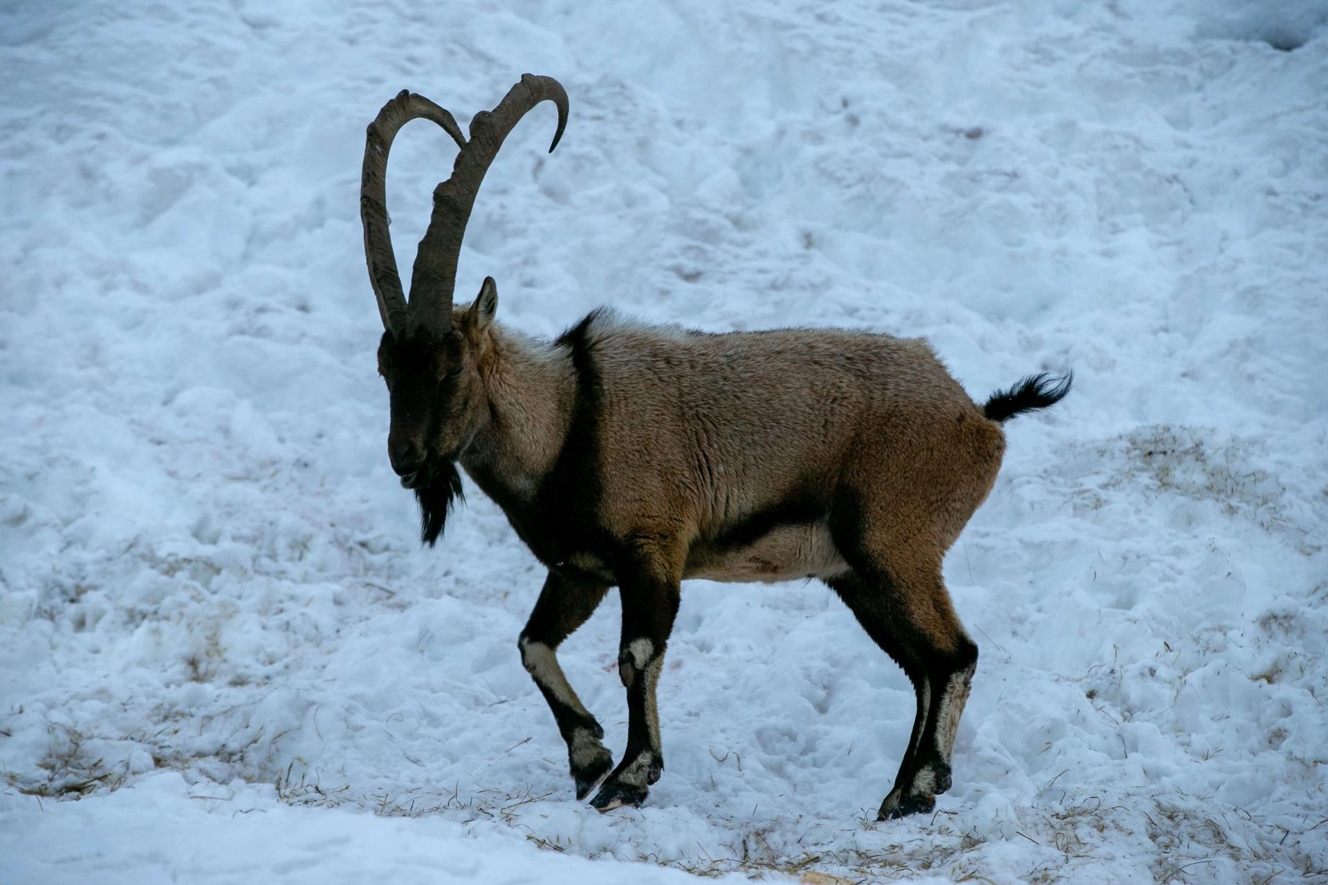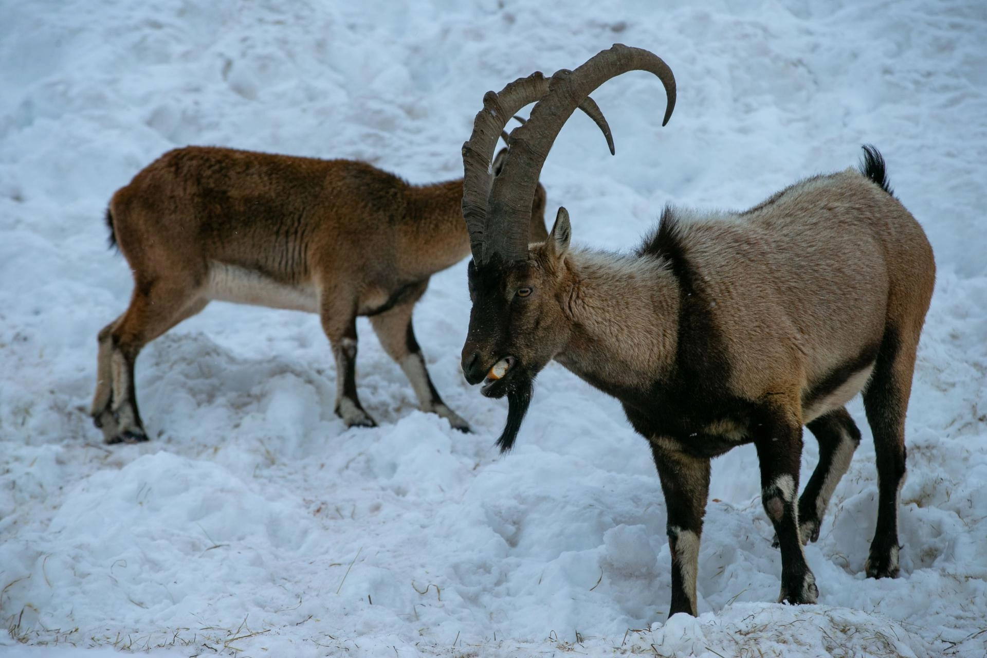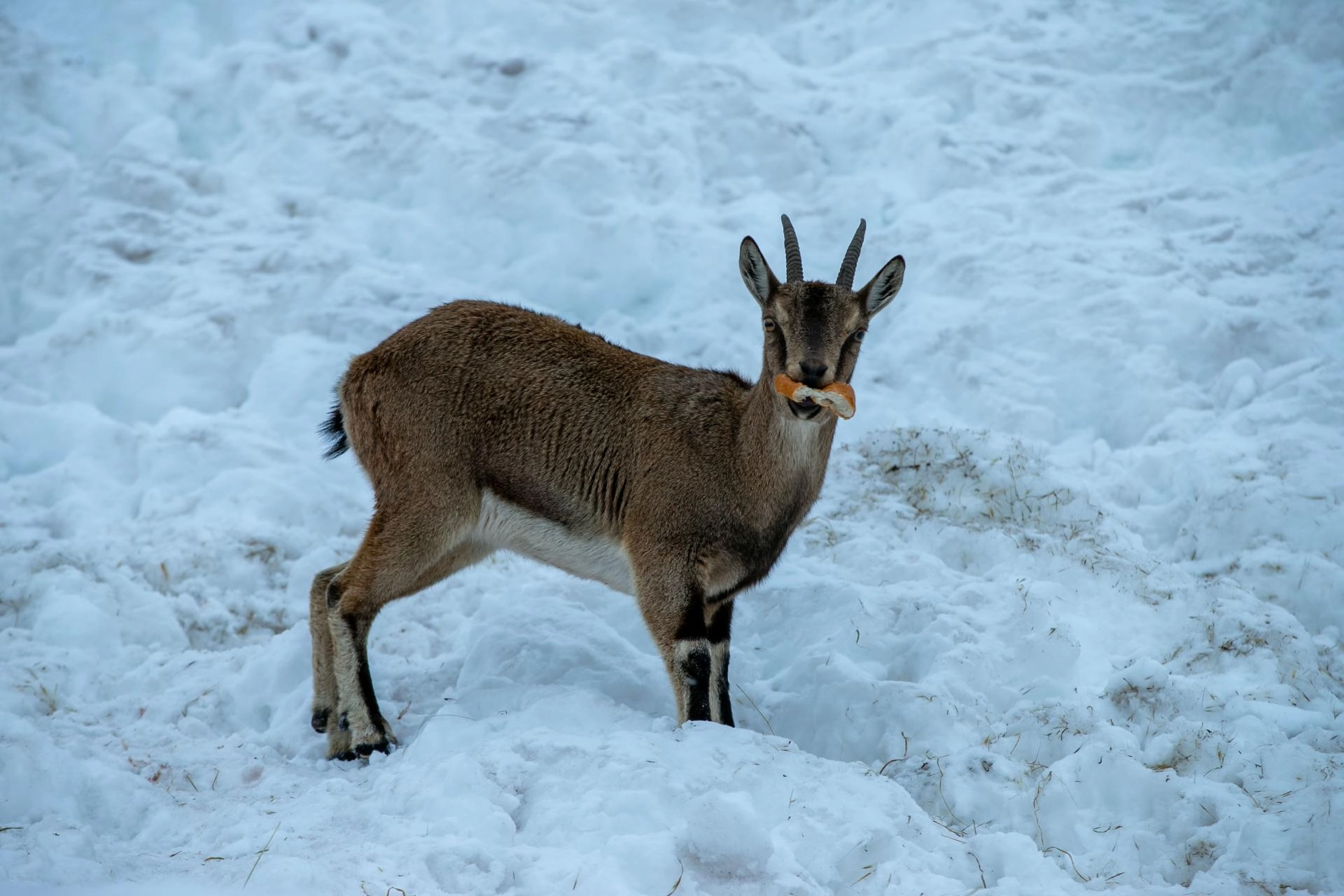 Karlı dağlardan işletme yakınına gelen dağ keçilerine yem ve ekmek verildi.