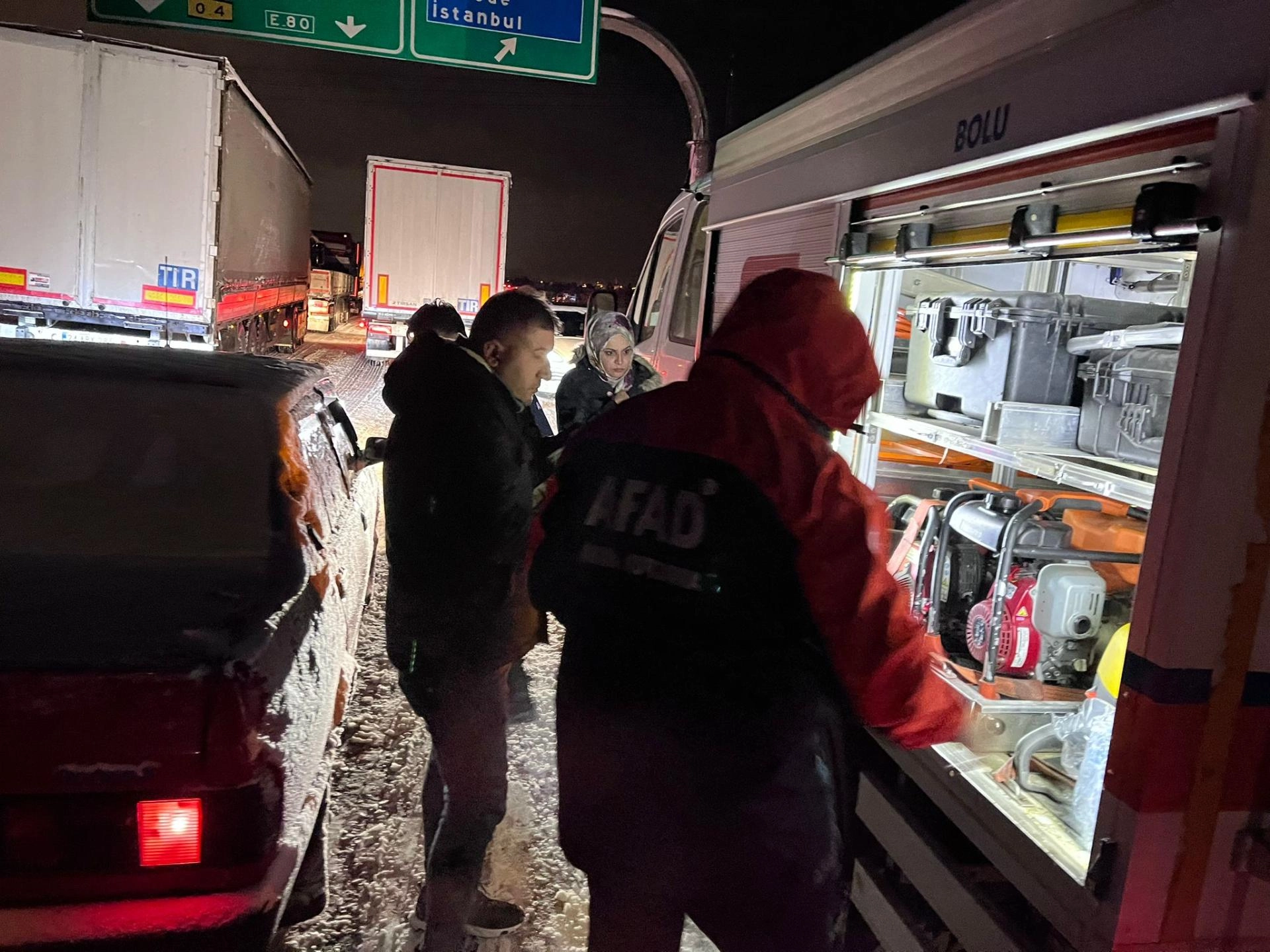 "AFAD tarafından 178 personel ve 47 araç, Türk Kızılay tarafından ise 16 personel ve 4 araç, Bolu-Gerede, Karabük ve Çankırı-Çerkeş'te sahada görev yapmaktadır. Yolda mahsur kalan vatandaşlarımıza 782 kumanya ve 600 battaniye yardımı yapılmıştır. Vatandaşlarımızın, başta buzlanma ve don olayına bağlı ulaşımda aksamalar ile yerde kar örtüsü olan yüksek ve eğimli alanlarda çığ riski gibi olumsuzluklara karşı dikkatli ve tedbirli olmalarını, yetkili mercilerin uyarılarını dikkate almalarını önemle hatırlatıyoruz. Gelişmeler takip edilmektedir."
