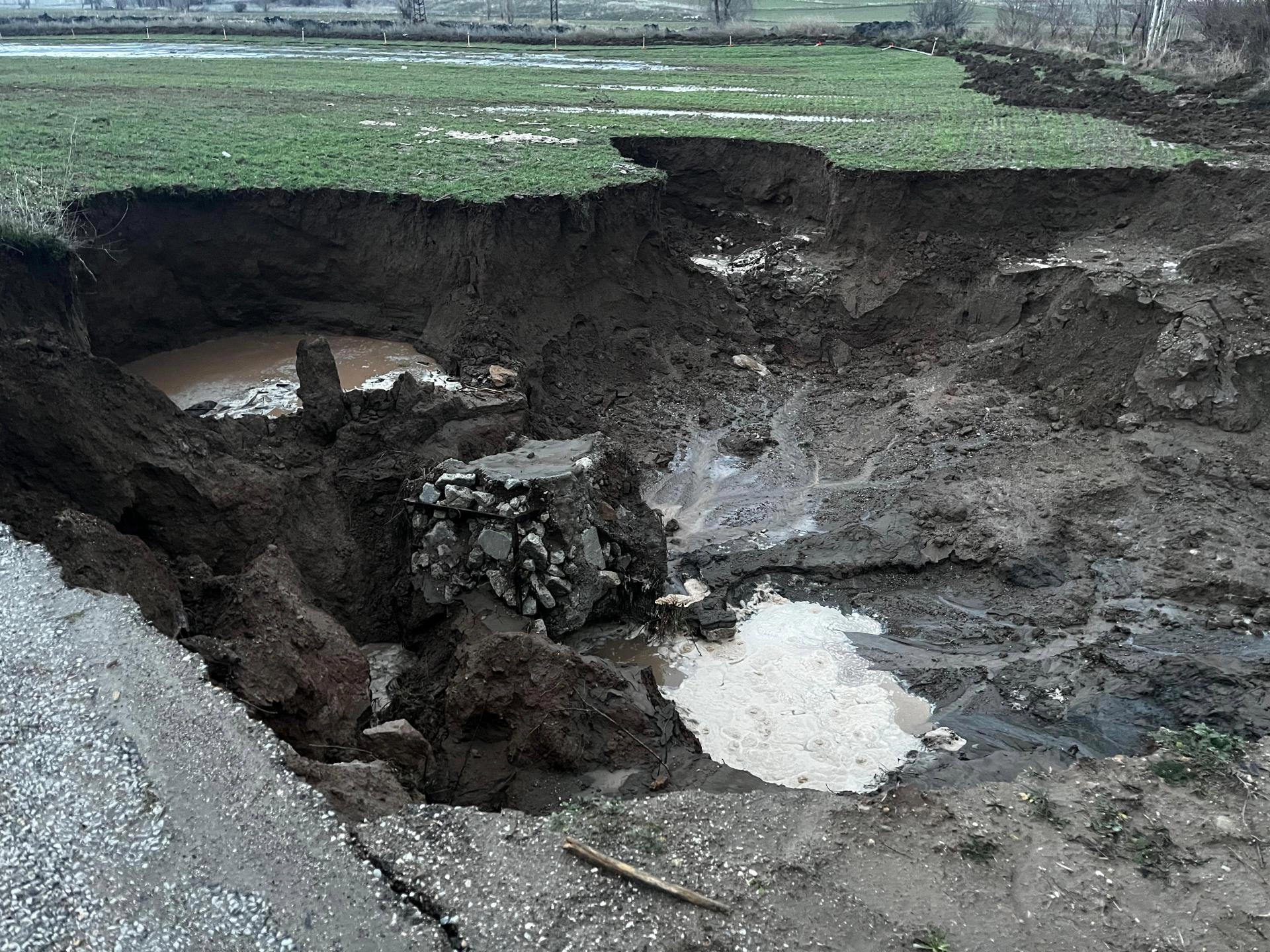 Hüdai Kaplıcaları ile Örenkaya arasındaki ara yola yakın noktadan geçen dere yatağında çökme meydana geldi.