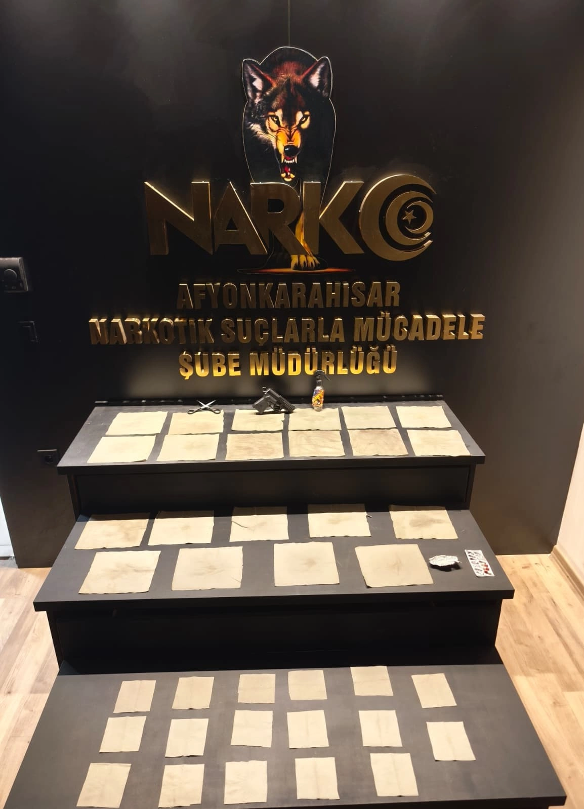 Belirlenen adreste yapılan aramada, 38 peçeteye emdirilmiş uyuşturucu, imalat aşamasında kullanıldığı değerlendirilen makas ve kimyasal madde şişesi ele geçirildi.