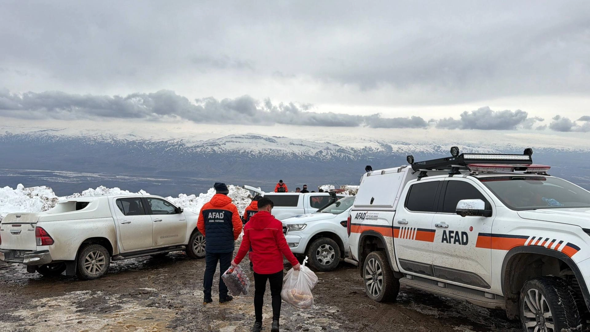Türk Kızılay Doğubayazıt Şubesi ekipleri de bölgeye giderek arama kurtarma çalışması yürüten ekiplere kumanya desteği veriyor.