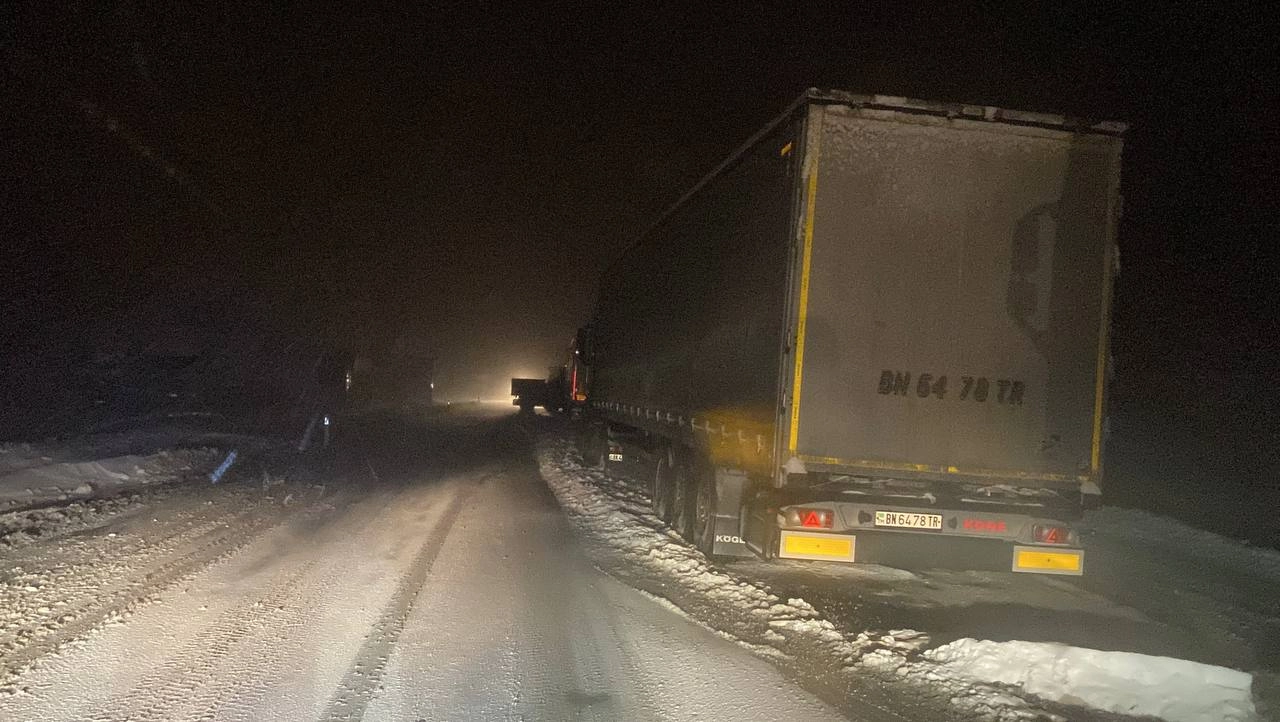 Doğubayazıt ile Çaldıran ilçelerini birbirine bağlayan Tendürek geçidinin 2 bin 400 rakımlı Somkaya köyü mevkisinde olumsuz hava koşulları nedeniyle çok sayıda tır yolda kaldı.