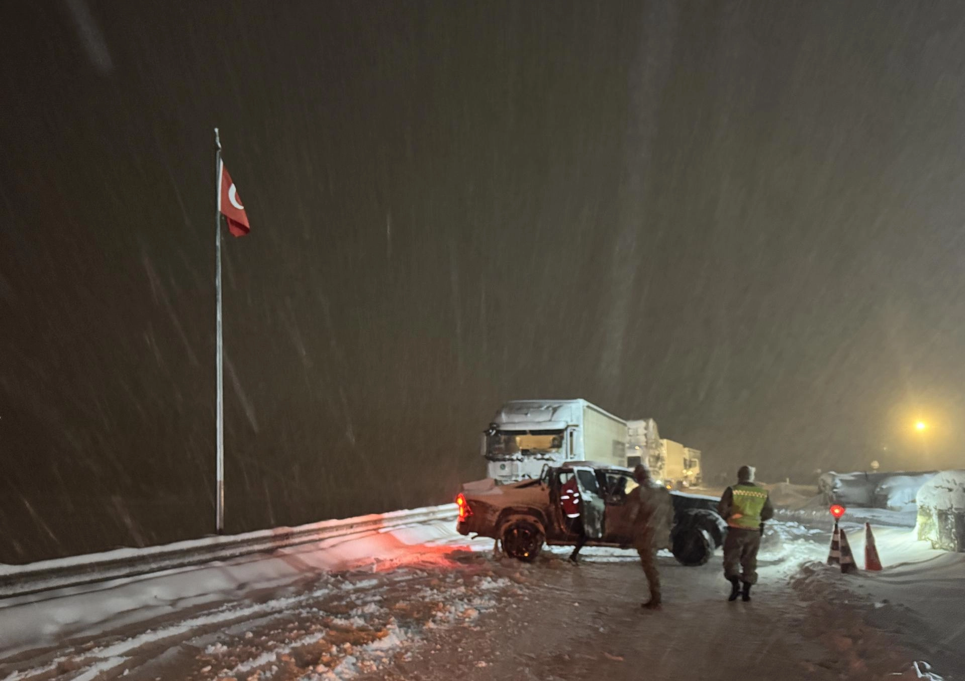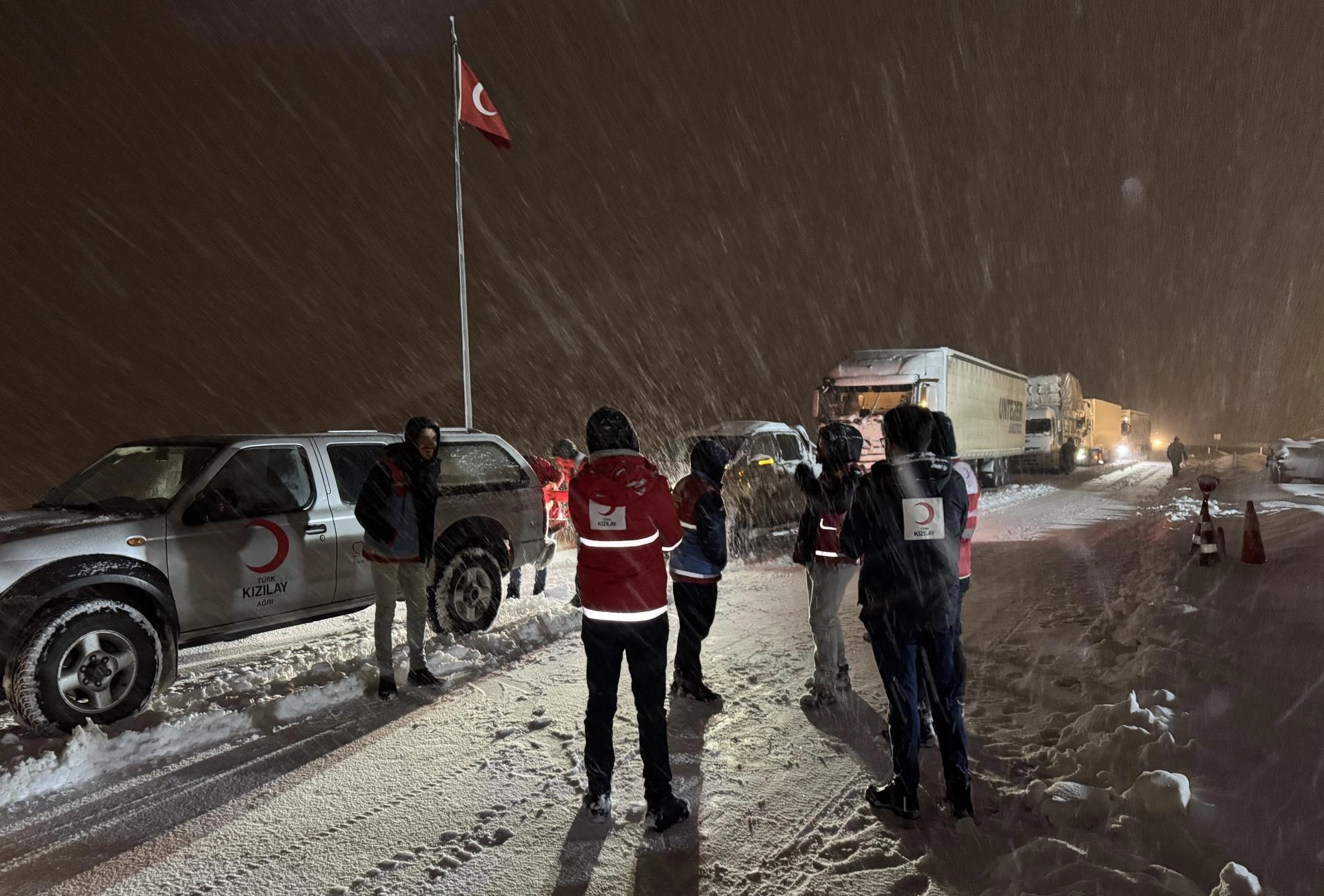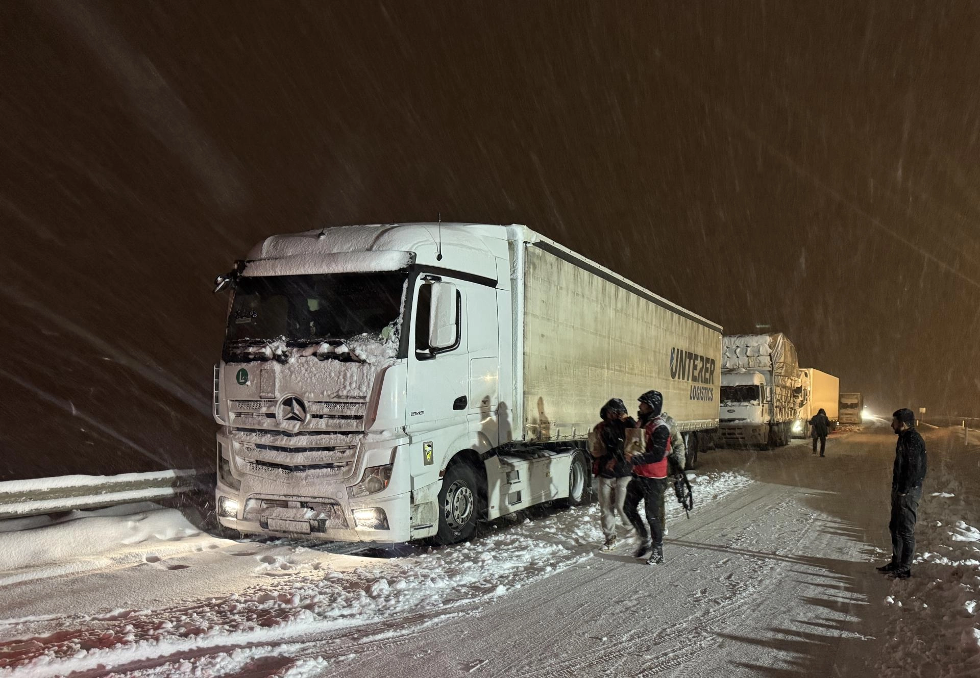 Kar yağışının devam ettiği bölgede, Türk Kızılay ve Diyadin Kaymakamlığı ekipleri tır sürücülerine ikramda bulundu.