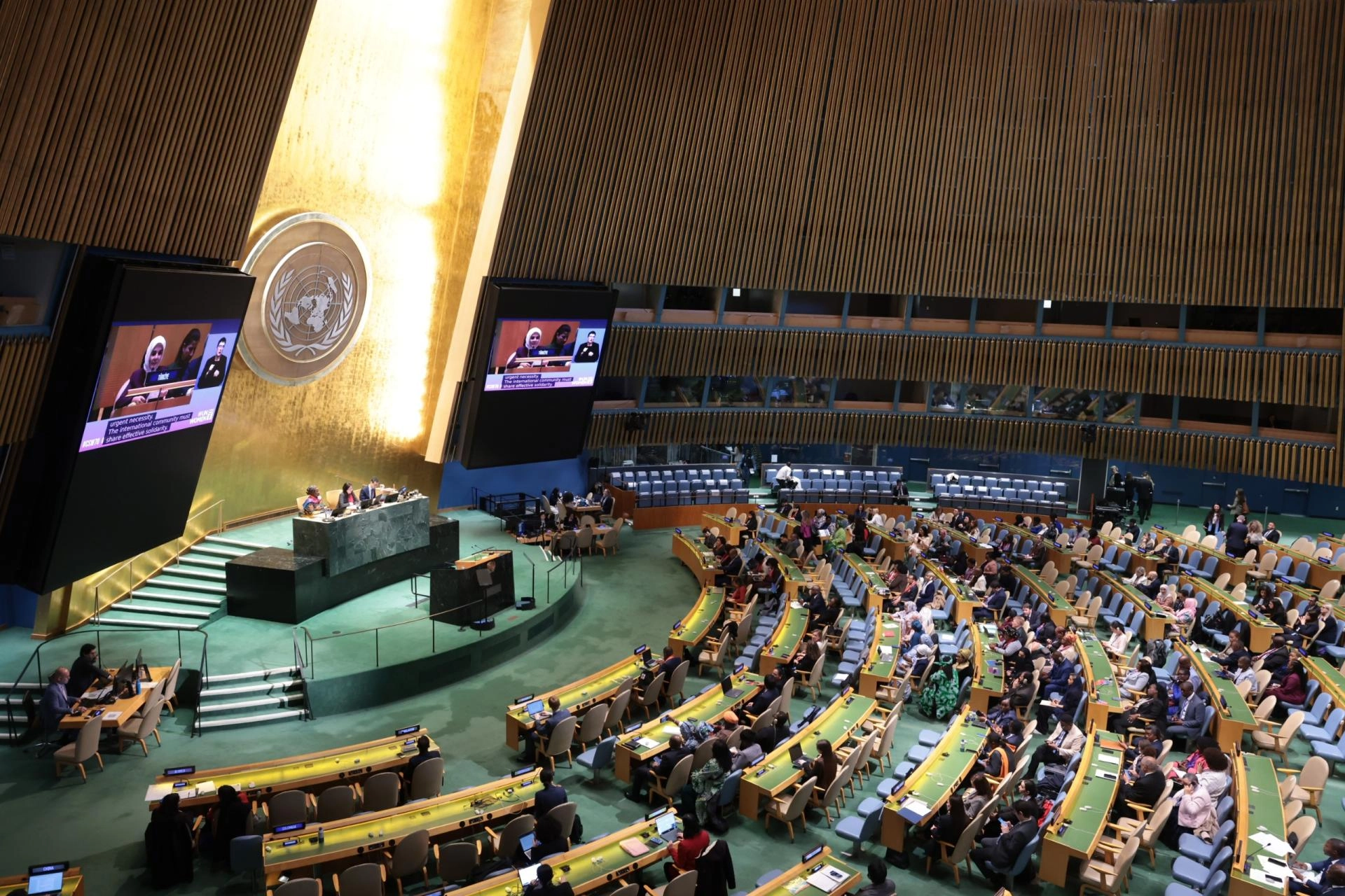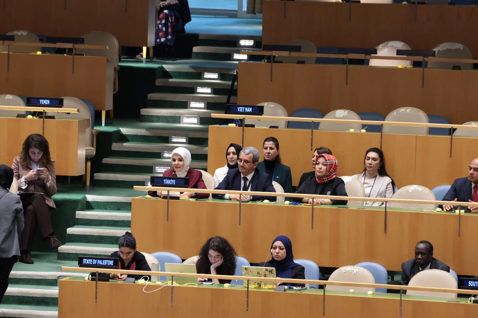 Mahinur Özdemir Göktaş, Genel Kurula hitabında, kadınlar ve kız çocukları için adalete erişimin insan onurunun teminatı, sosyal uyumun dayanağı ve sürdürülebilir kalkınmanın belirleyici unsuru olduğunu söyledi.
