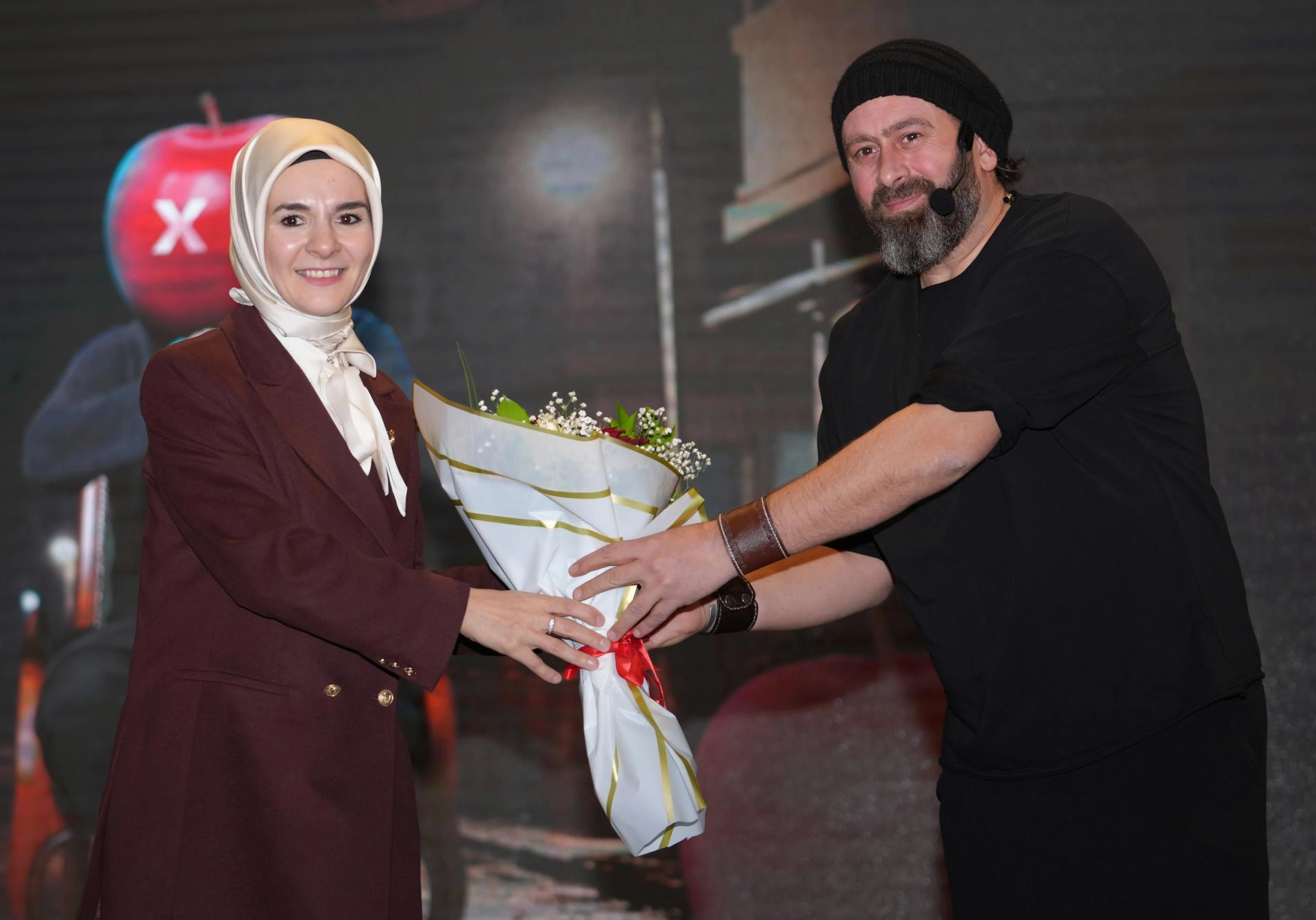 Konuşmasının ardından Göktaş, sanatçı Muhammet Sena Yelkovan'a hediye verdi.