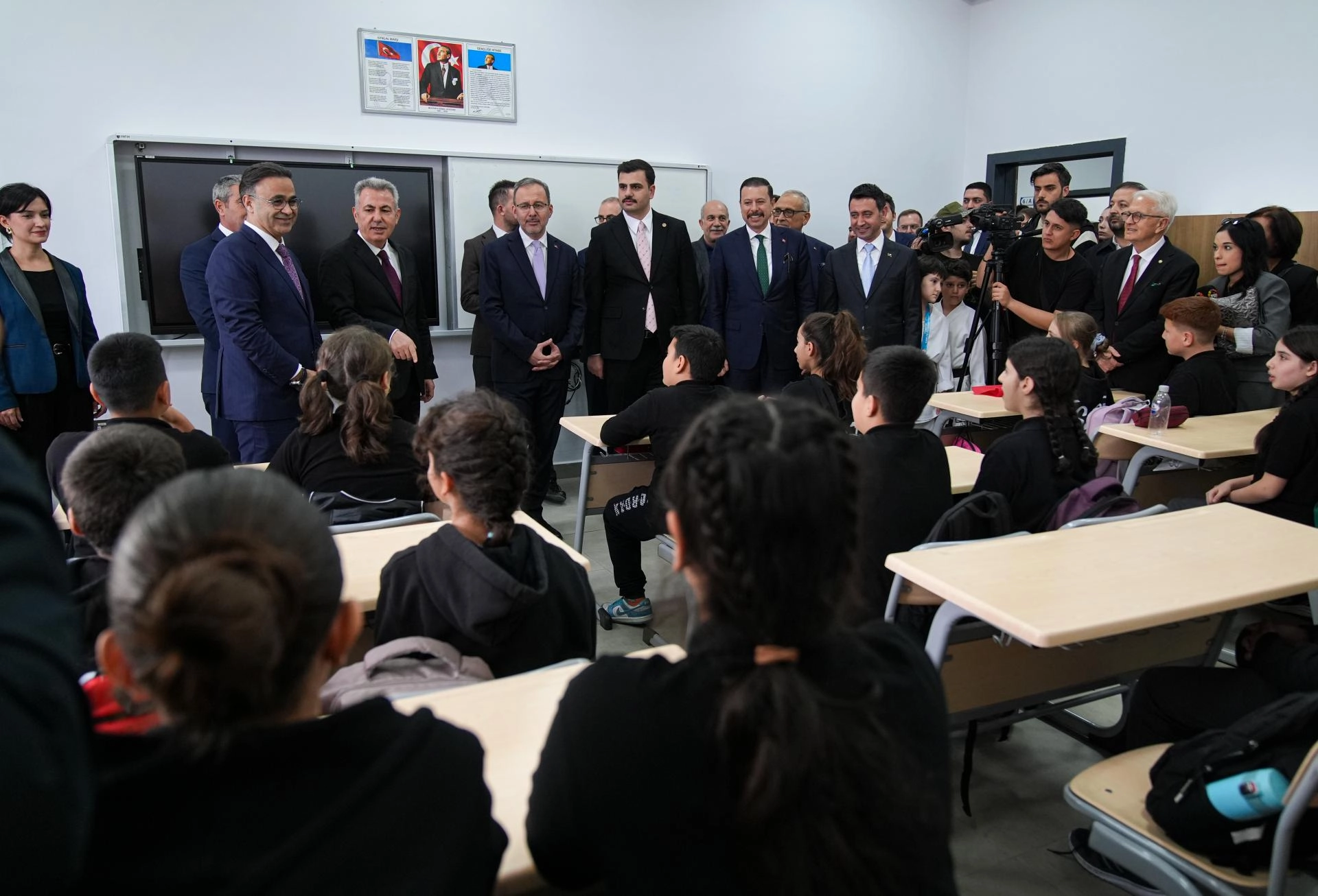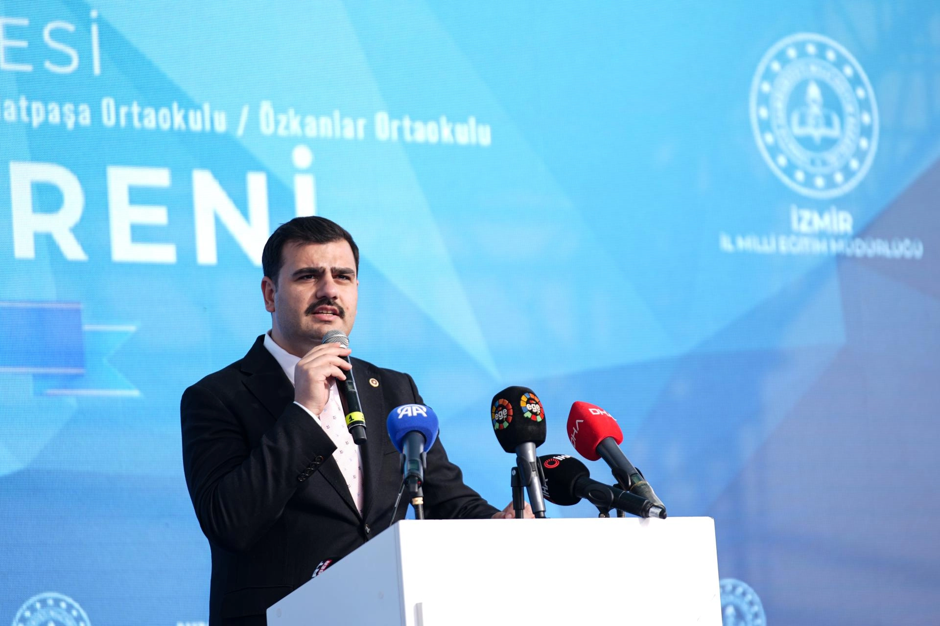 "Yaklaşık 178 milyon ücretsiz ders kitabı, yaklaşık 45 bin bilgisayar, 80 bin tablet ve 30 bin akıllı tahta öğrencilerimize ulaştırıldı. Yeni okullarımız robotik sınıflar, kodlama atölyeleri ve büyük laboratuvarlar ve yapay zeka destekli öğrenme altyapılarıyla İzmir'i bilgi üreten bir şehir haline getirecek. Şu anda da Meclis'te bütçe görüşmeleri devam ediyor. Hükümetimiz bu yolda en büyük bütçeyi Milli Eğitim'e ayırdı. Bu tercih aslında çok net bir mesajdır. Türkiye geleceğini, eğitime yaptığı yatırımla kuruyor. Bu güçlü bütçe daha fazla okul, daha nitelikli sınıflar ve daha eşit bir eğitim sistemi anlamına da geliyor. İşte bu yaptığımız okullar da bu kararlı bütçenin bir sonucudur. 2002 öncesinde lisede okullaşma oranımız yüzde 50'nin altındaydı. Bugün hamdolsun 2025'te yüzde 90'a ulaşmış durumda. İlkokul ve ortaokulda okullaşma oranı yüzde 95'in üzerine çıkmış durumda. Bu büyük değişimin son 23 yılda eğitime verilen emeğin ve yatırımın somut bir sonucu olduğunu da sizlerle paylaşmak istiyorum."
