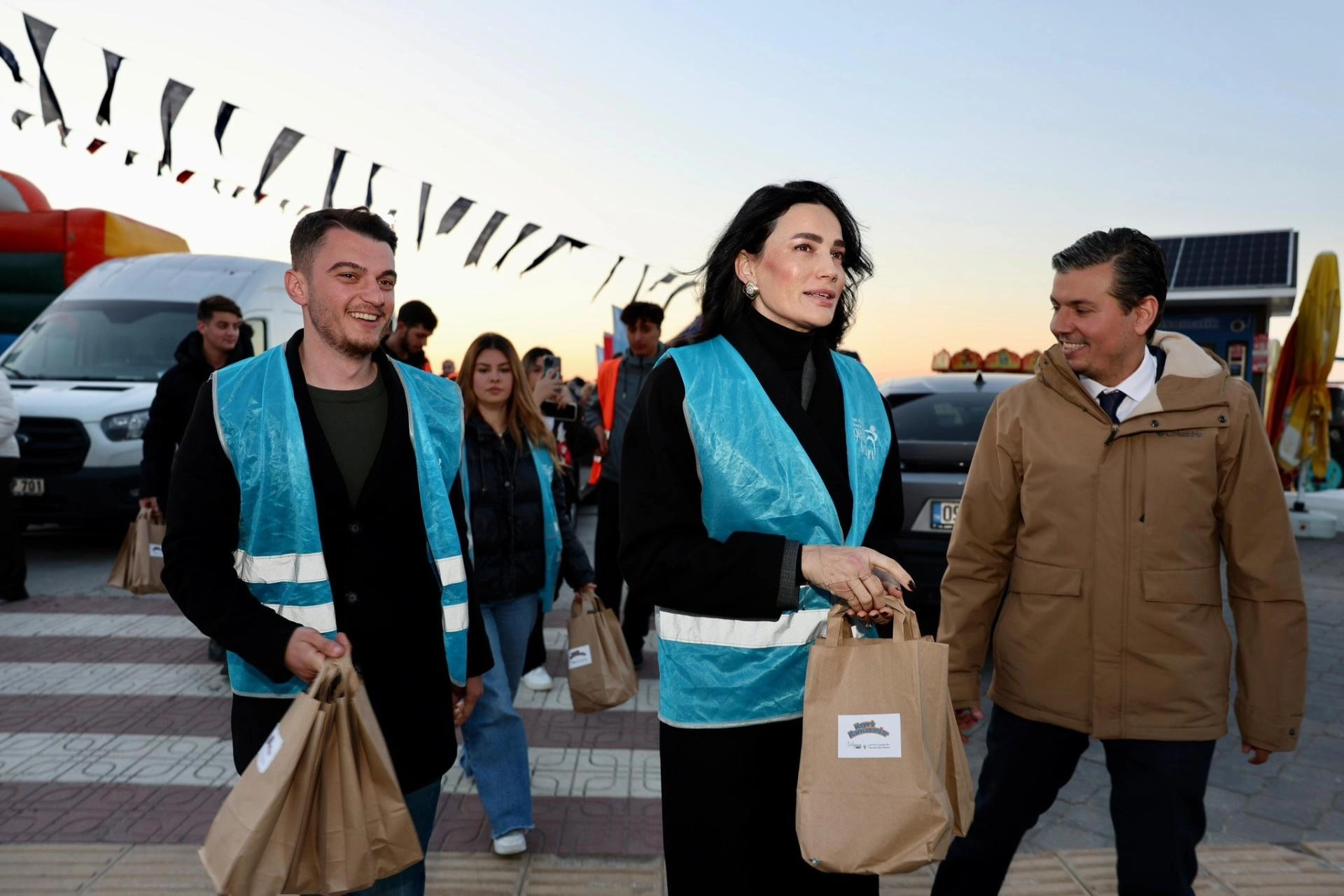 Kuşadası'nda düzenlenen programa katılan Milletvekili Seda Sarıbaş, trafikteki sürücülere ve yolculara ikramlık verdi.