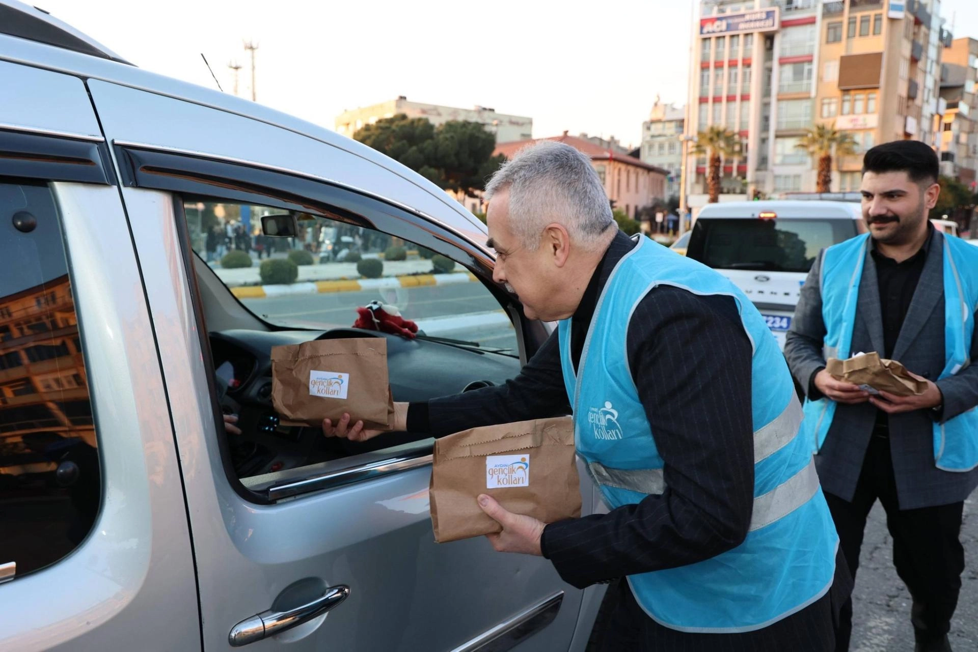 AK Parti Aydın Gençlik Kolları tarafından organize edilen "İftara 5 Kala" etkinliği kapsamında Kuşadası, Söke ve Efeler ilçelerinde trafikte kalan ve iftara yetişemeyen vatandaşlara ikramlık dağıtıldı.