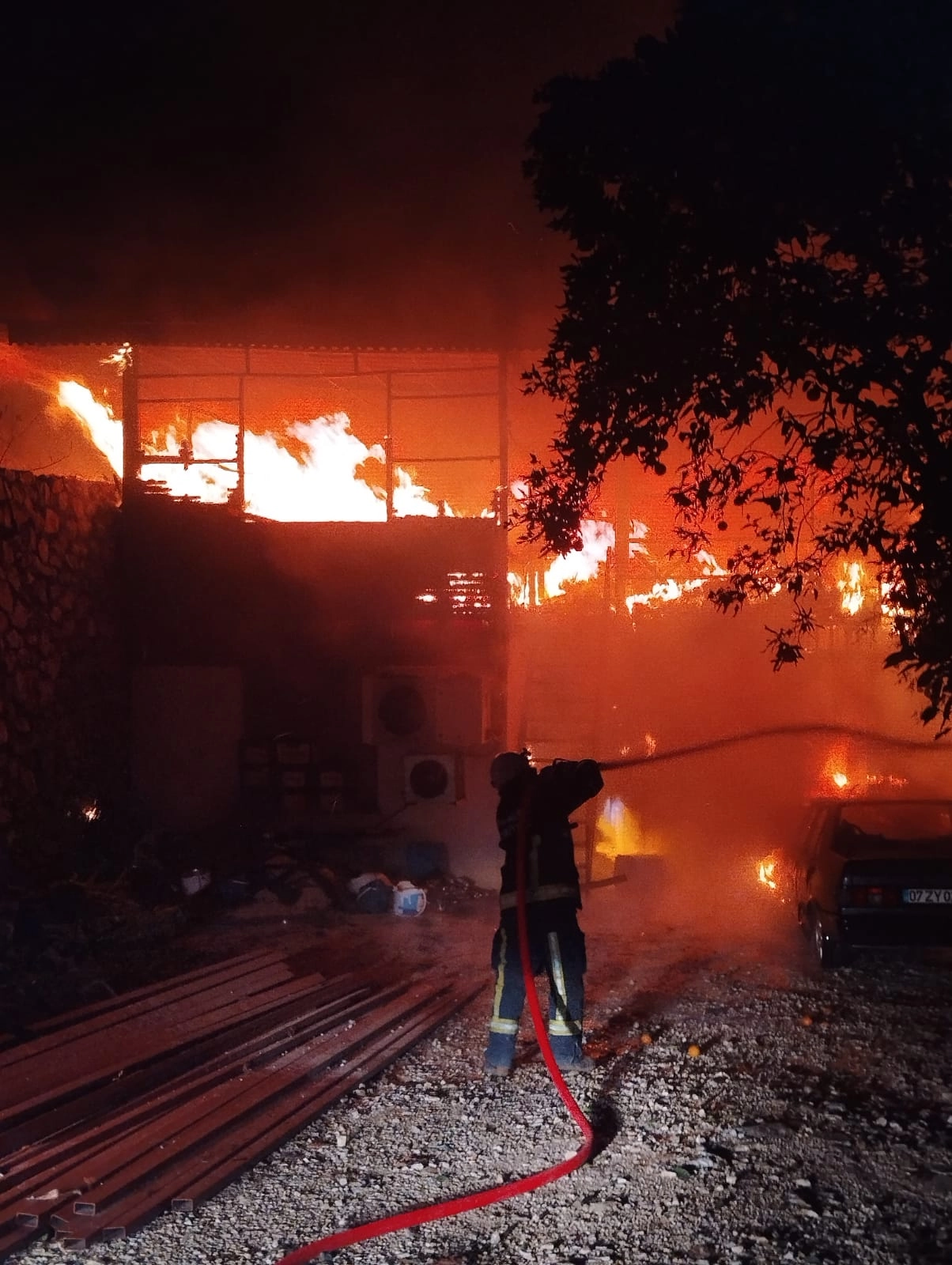 Yangın nedeniyle restoranda ve bir otomobilde hasar oluştu.