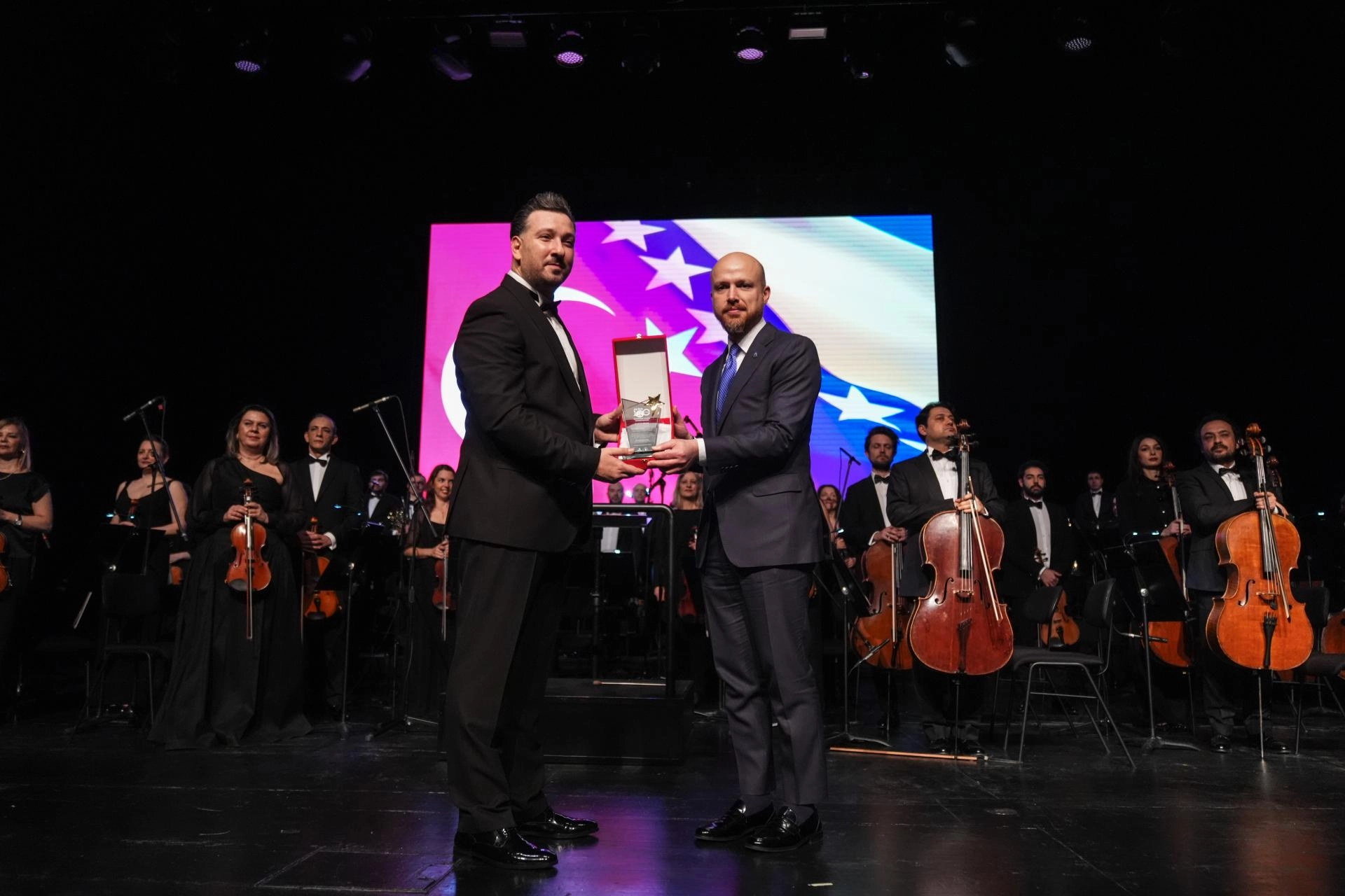 Bilal Erdoğan'ın kendisine plaket takdim ettiği Bosnalı besteci Emir Mejremic ise sahnede yaptığı konuşmada, "Cumhurbaşkanı Erdoğan liderliğinde bu güzel ülke, Cumhurbaşkanı Aliya İzzetbegoviç döneminde var olan ve onun ailesi aracılığıyla bugün de yaşamaya devam eden aynı değerleri yaşatmakta. Bu da halklarımız arasında kopmaz bir bağ oluşturmakta. Tarih boyunca iz bırakan ve yaptıklarıyla daima yol gösterecek olan büyük şahsiyetlere ithaf ettiğim bu icramın gerçekleşmesine katkı sunan İlim Yayma Vakfına, Bilal Erdoğan'a ve Aliya İzzetbegoviç Vakfına çok teşekkür ediyorum." dedi.