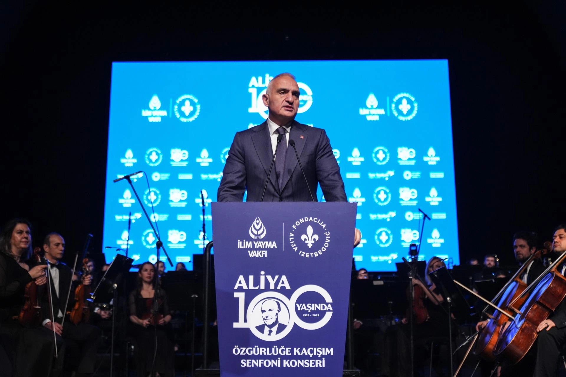 Konser programına katılan Kültür ve Turizm Bakanı Mehmet Nuri Ersoy, İzzetbegoviç'in "Özgürlüğe Kaçışım" adlı eserine dikkati çekerek, "Aliya İzzetbegoviç'i en iyi anlatan kavramlardan biri doğallıktır. Doğallık kavramı onun fikir dünyasında hem ahlaki hem de varoluşsal bir ilke olarak merkezi bir konuma sahiptir. Aliya için doğallık, ikircikliğe, insanı belli kalıplara sokan ve o kalıplar içinde yaşamayı dayatan her türlü ideolojik yargılara ve insanın özgürlüğünü sınırlayan zorlamalara karşı ilkesel bir duruştur." diye konuştu.