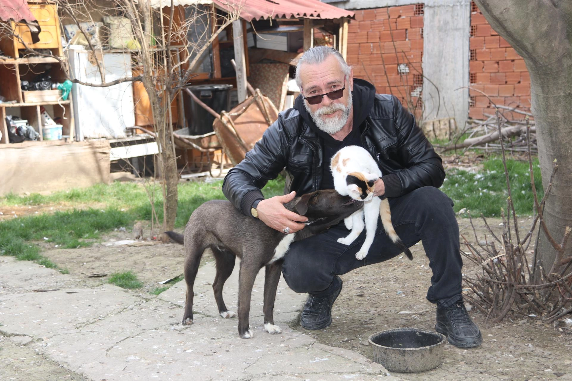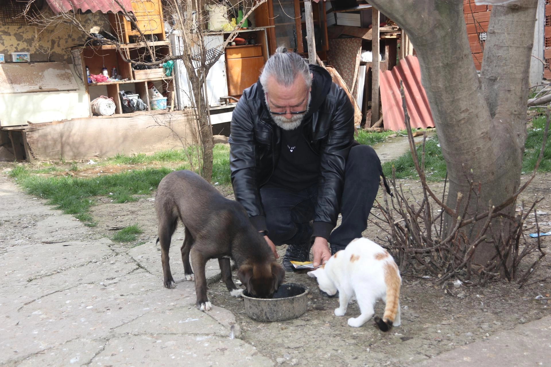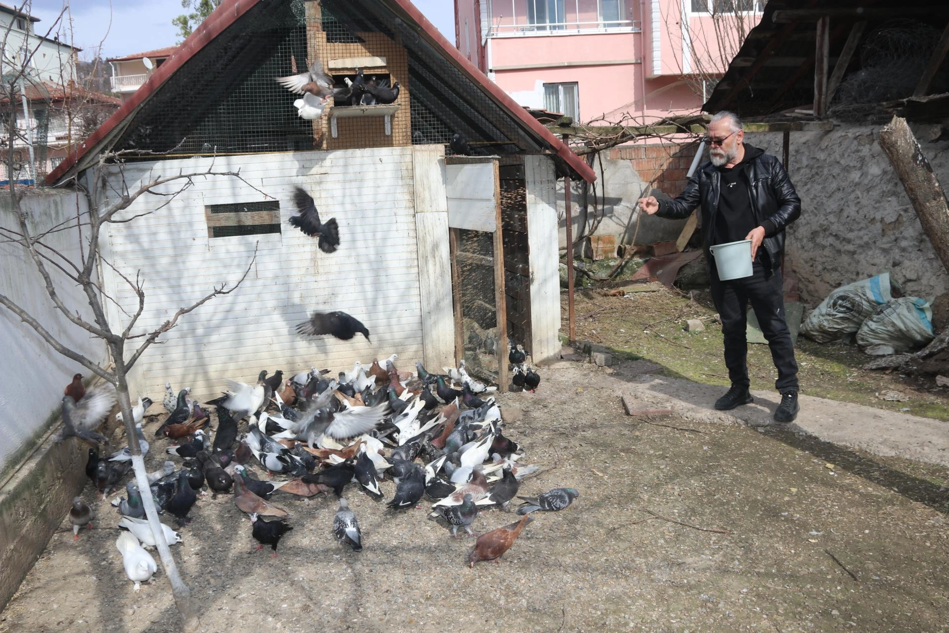 Taşova ilçesine bağlı Yemişen Mahallesi'nde yaşayan 58 yaşındaki Kuru, bahçesinde kedi, köpek ve güvercin besliyor.