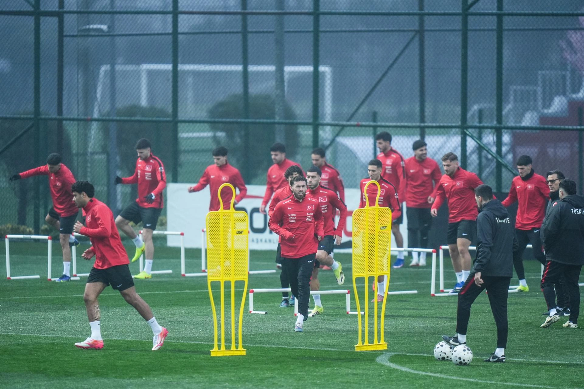 Türkiye Futbol Federasyonunun (TFF) Riva'daki Hasan Doğan Milli Takımlar Kamp ve Eğitim Tesisleri'nde teknik direktör Vincenzo Montella yönetiminde yapılan antrenmanın ilk 15 dakikası basına açık gerçekleştirildi.