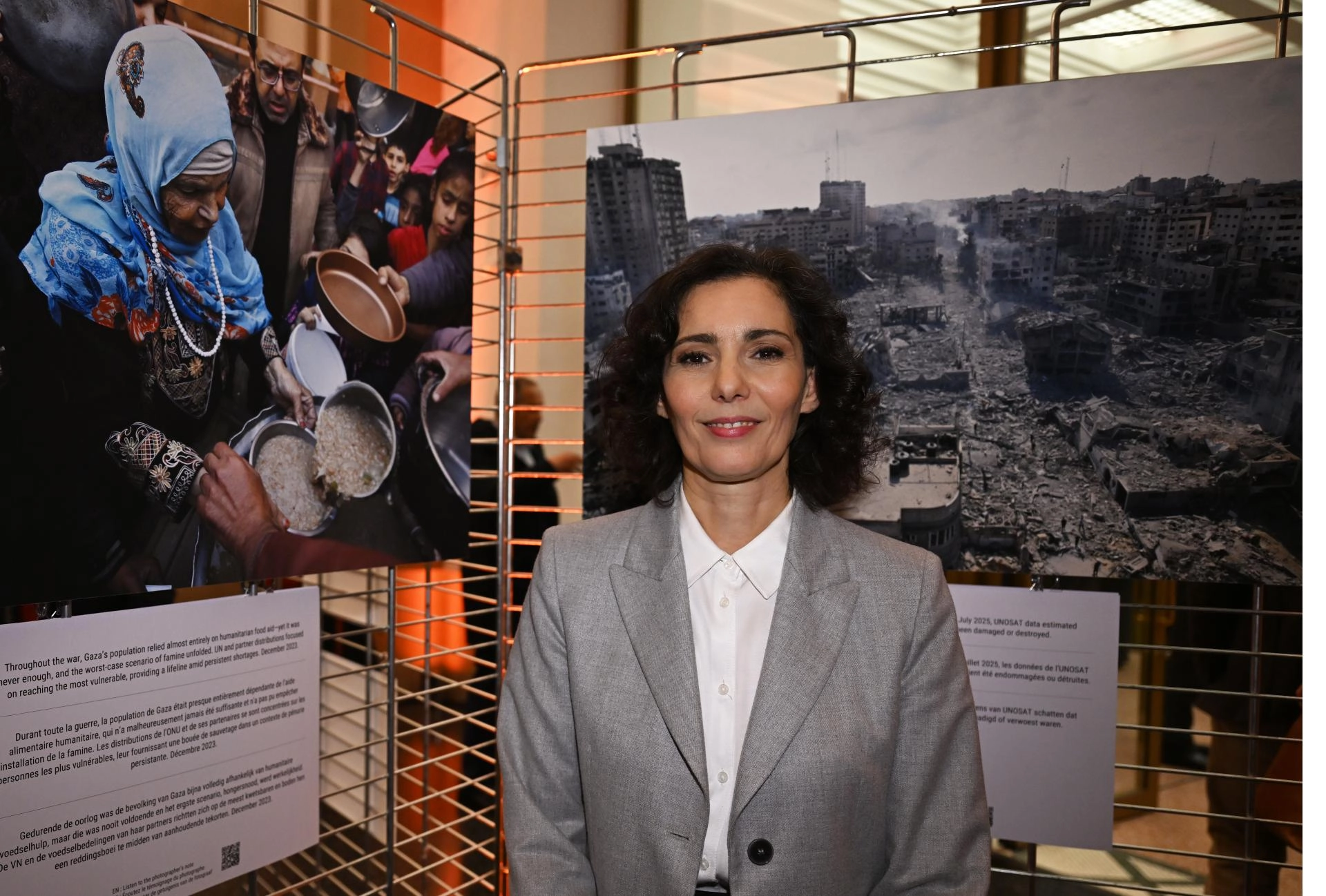 Lahbib, Brüksel Belediye Başkanı Philippe Close'un ev sahipliğinde Birleşmiş Milletler Yakın Doğu'daki Filistinli Mültecilere Yardım ve Bayındırlık Ajansı (UNRWA) çalışanlarının Gazze'de çektiği fotoğrafların yer aldığı "Gazze: Onların Gözünden" sergisinin açılışında konuştu.