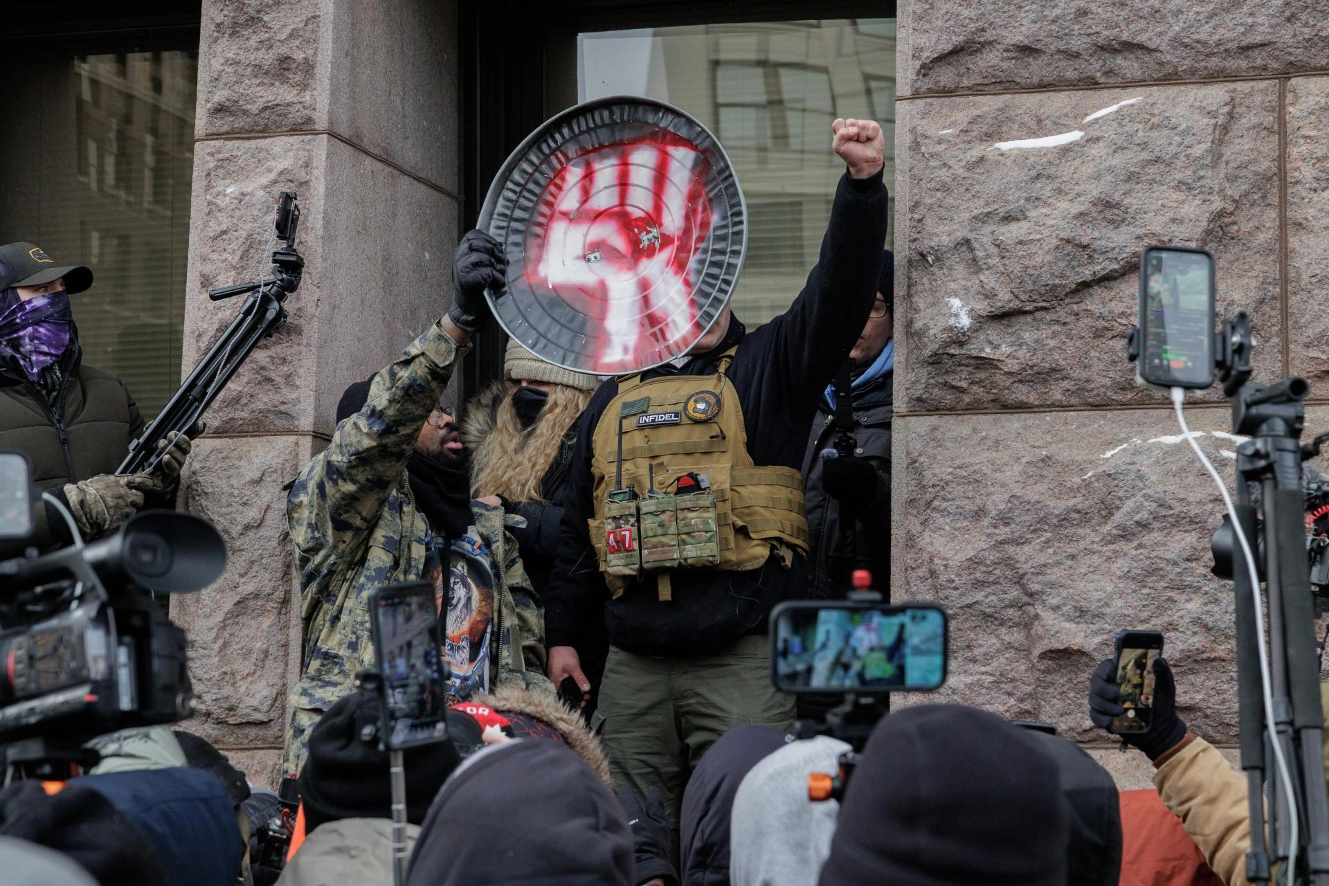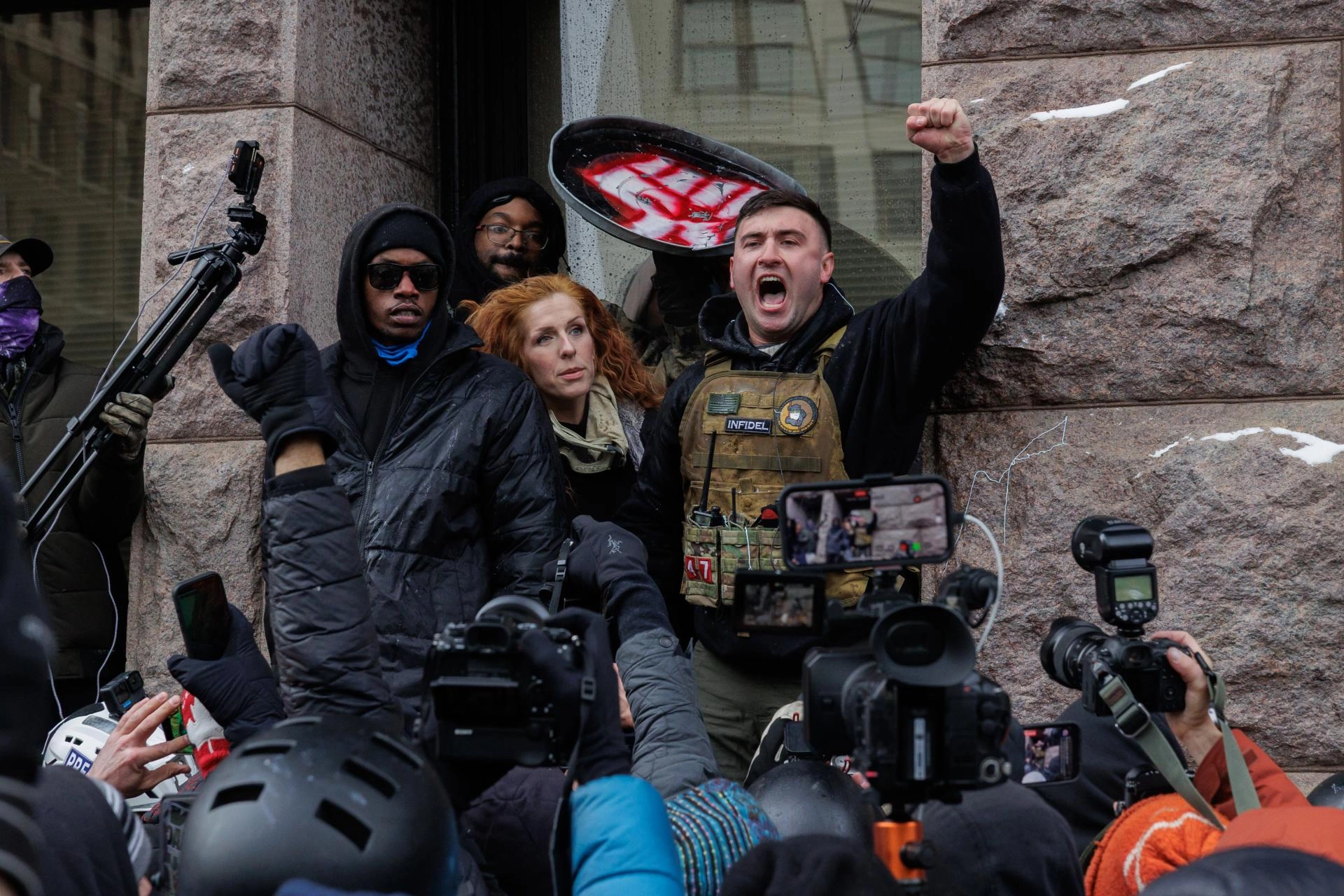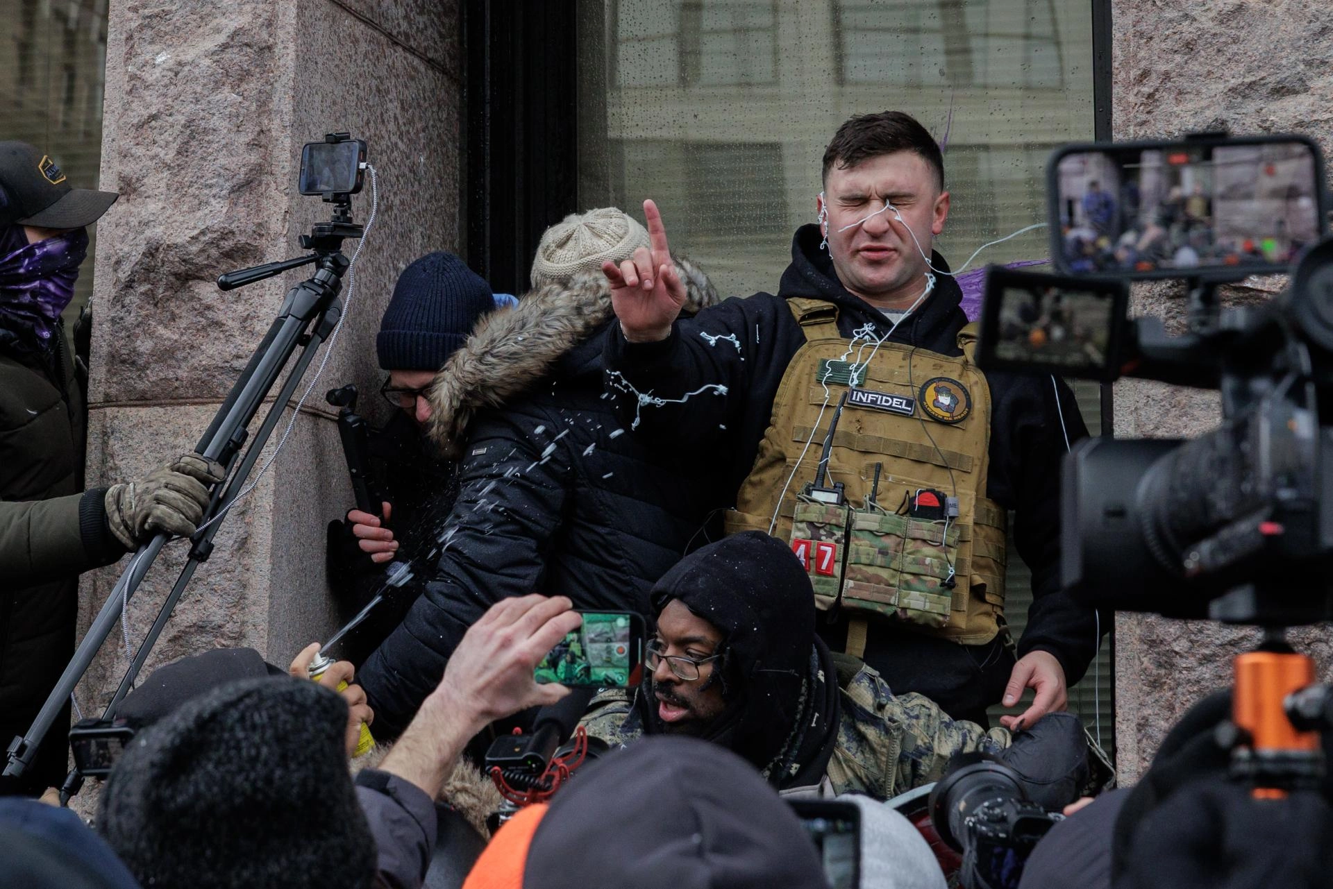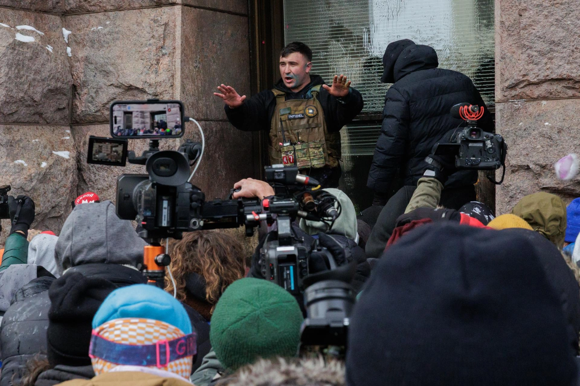 Trump'ın göreve gelmesinden sonra başkanlık kararı ile affedilen 6 Ocak Kongre baskını mahkumu Jake Lang, Minneapolis Belediye binası önünde "Kur'an-ı Kerim yakmak" amacıyla etrafındaki küçük bir grup ile gösteri düzenledi.