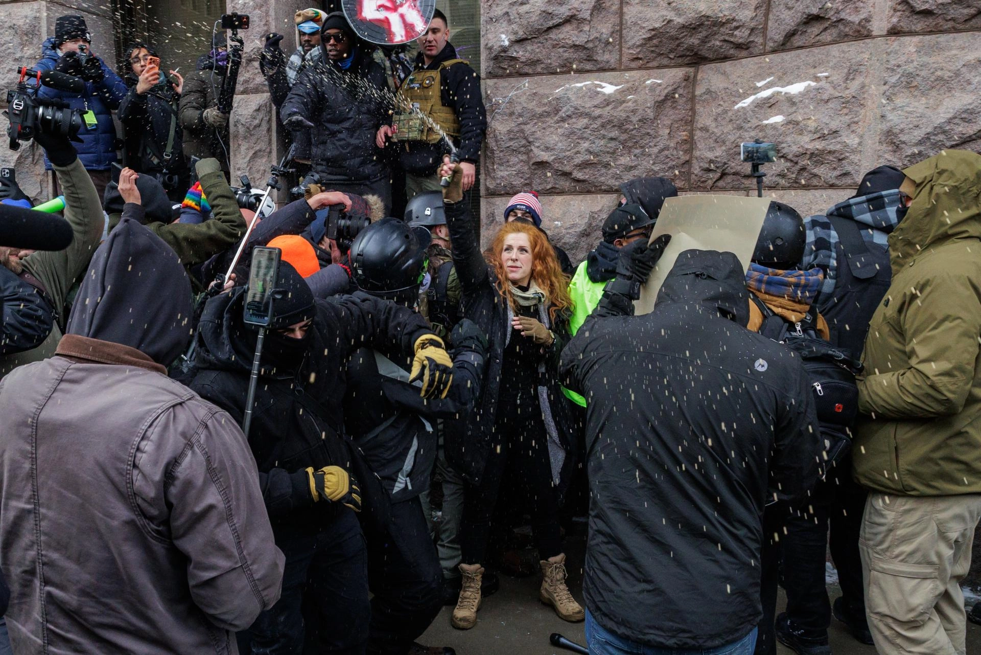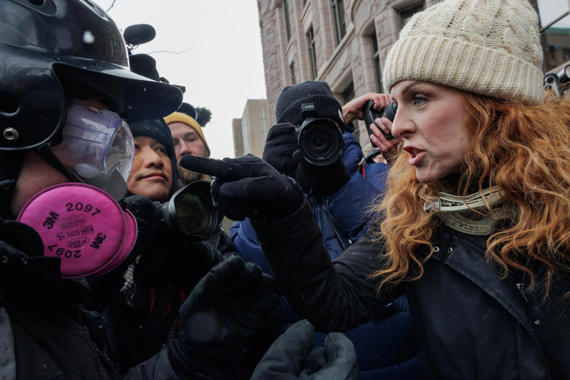 Lang'ın eylemi sırasında, ABD vatandaşı bir kadının öldürülmesinden sonra şehirde bir süredir ICE ajanlarına karşı protestolara devam eden göstericiler ile Lang ve grubu arasında arbede yaşandı.