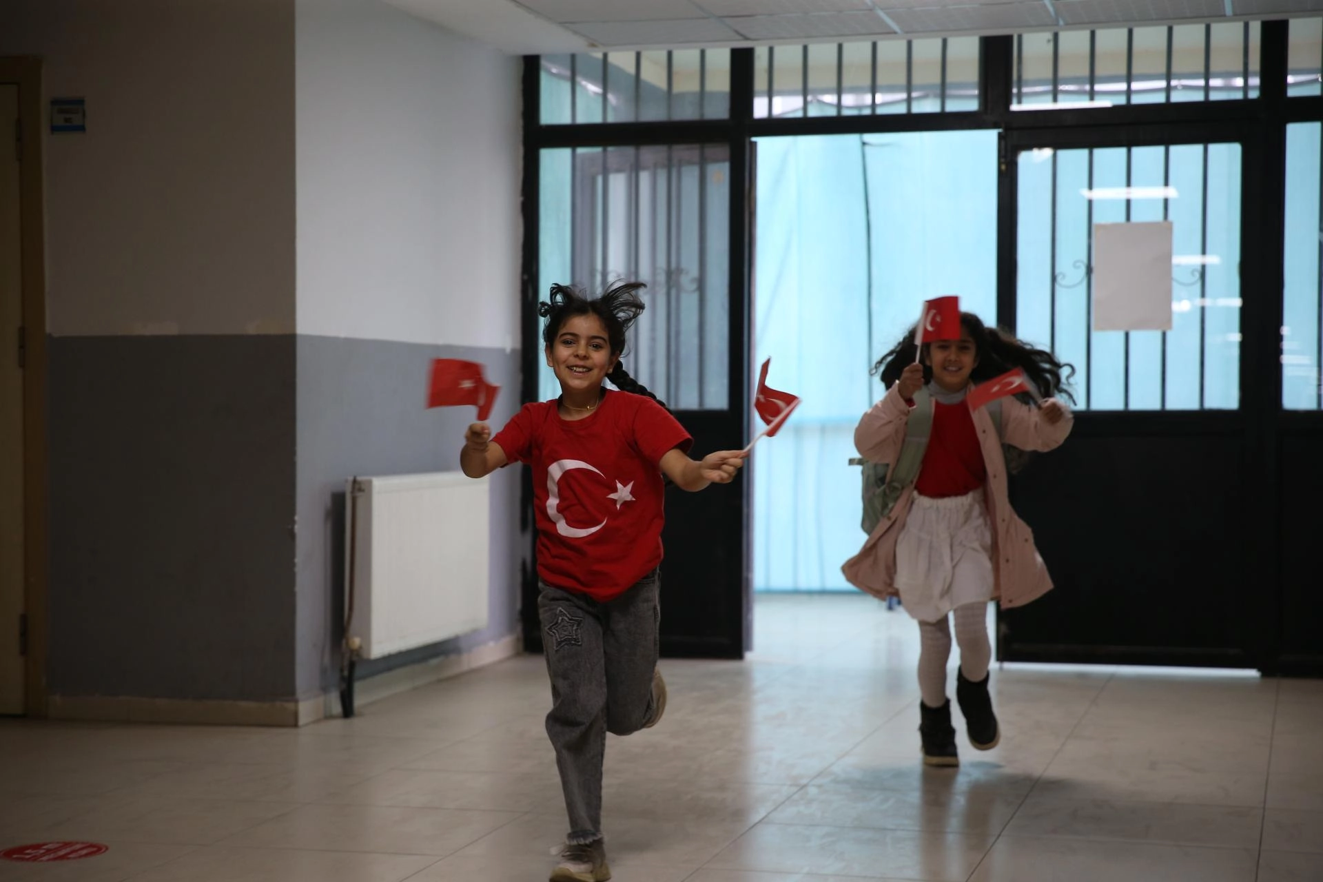 Mersin'in Yenişehir ilçesinde de öğretmen ve öğrenciler, ellerindeki Türk bayraklarıyla Yenişehir İlkokulunun yolunu tuttu.