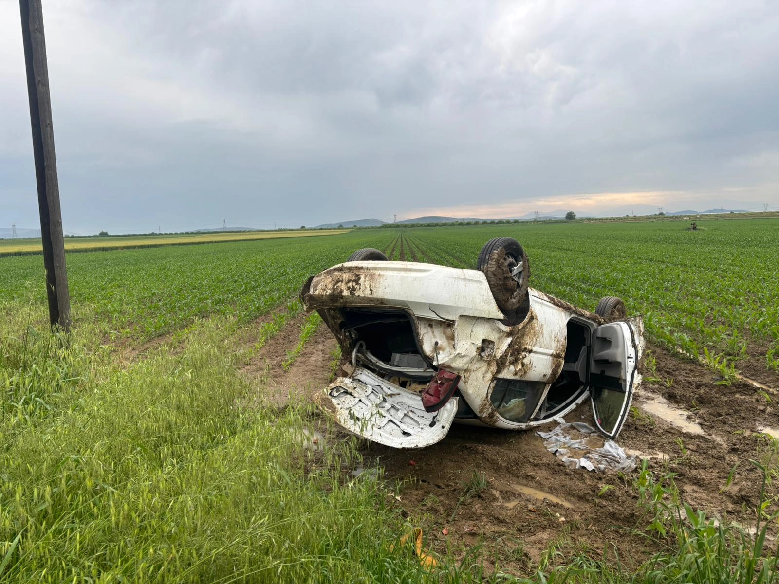 Yol kenarındaki tarlaya devrilen araçtaki sürücünün yanı sıra Yücel H, Salih K. ve Selvinaz K. yaralandı.