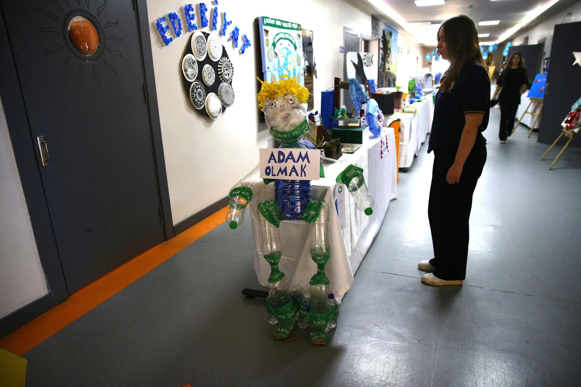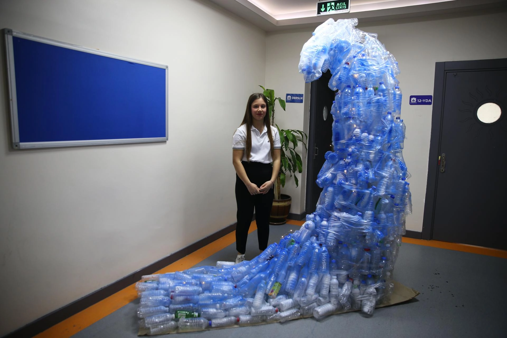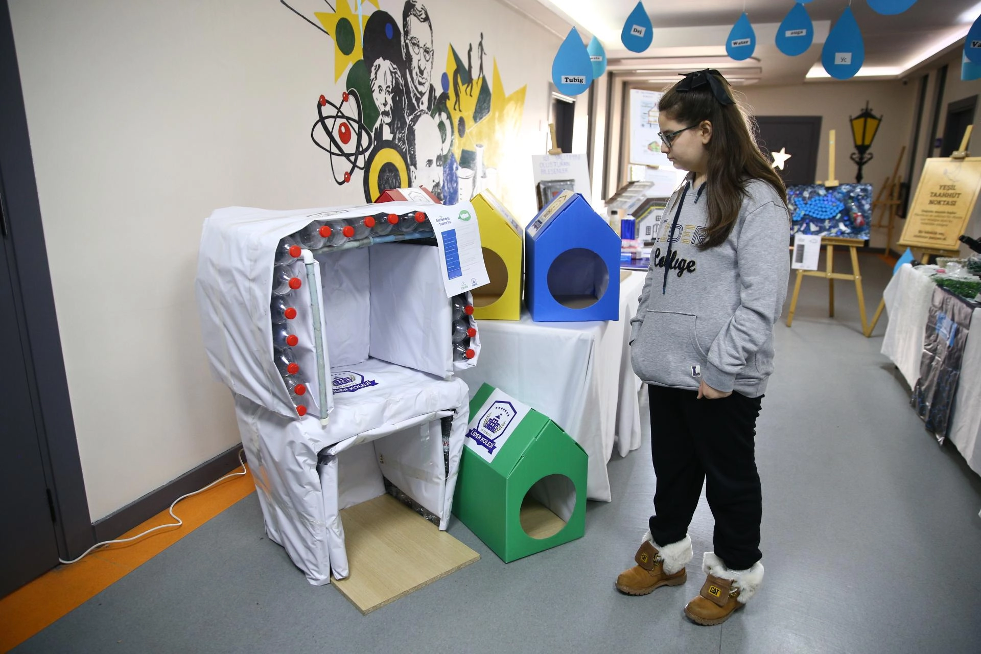 Bu kapsamda kentteki bir özel okulun öğrencileri, atık malzemeleri geri dönüşüme kazandırıp heykel, tablo, süs eşyası ve kıyafetler tasarladı.