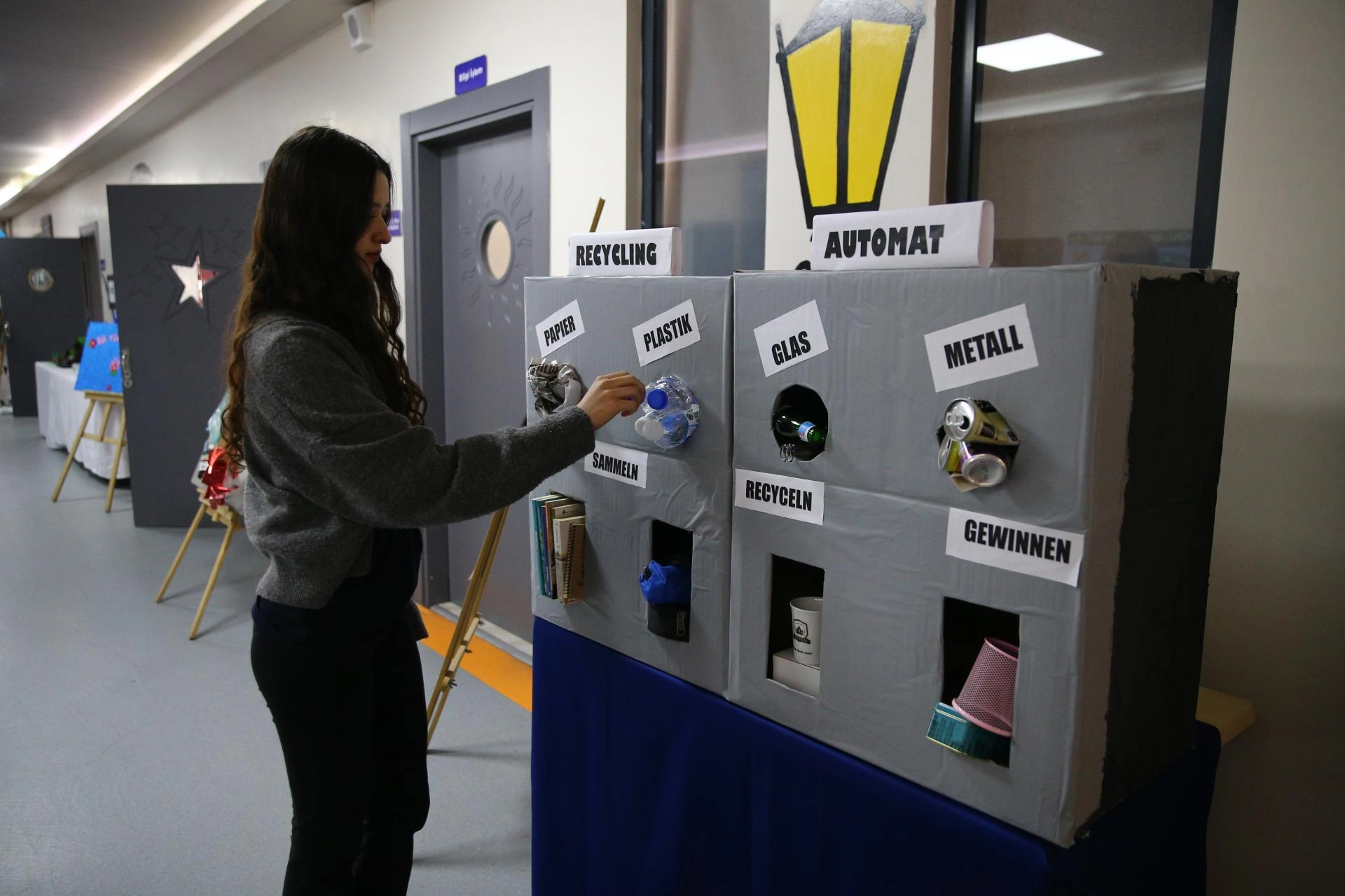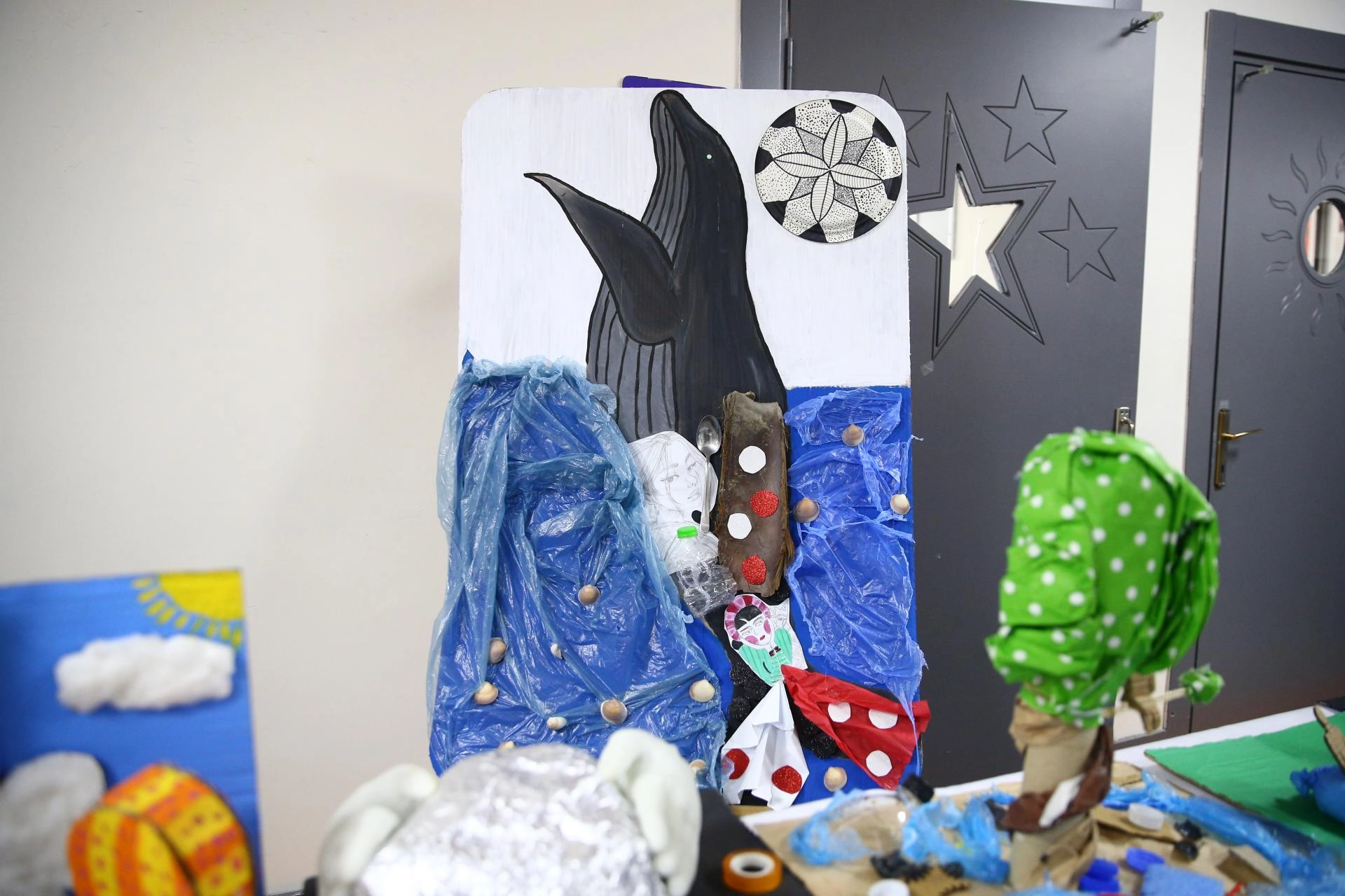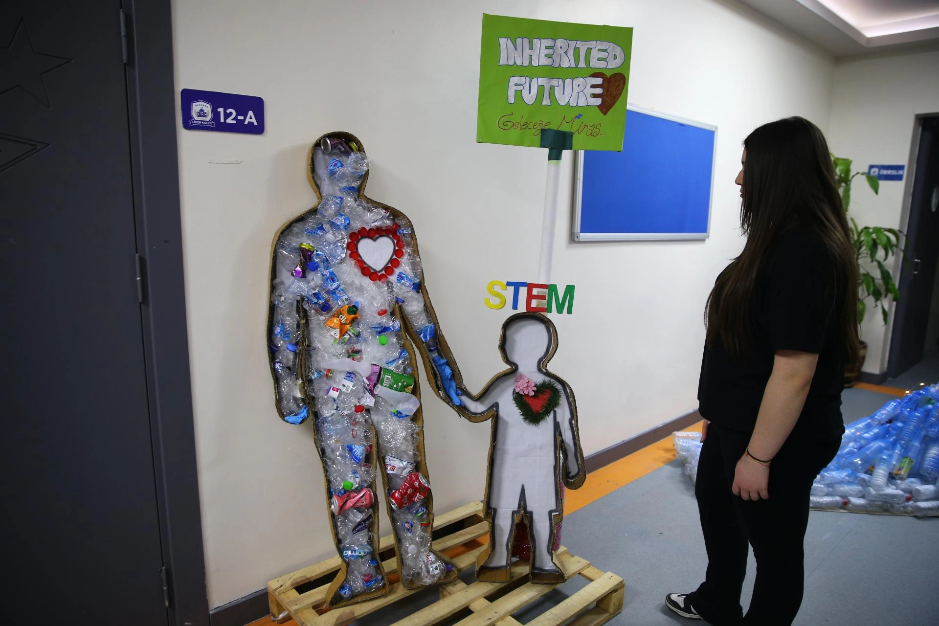 Bu kapsamda kentteki bir özel okulun öğrencileri, atık malzemeleri geri dönüşüme kazandırıp heykel, tablo, süs eşyası ve kıyafetler tasarladı.