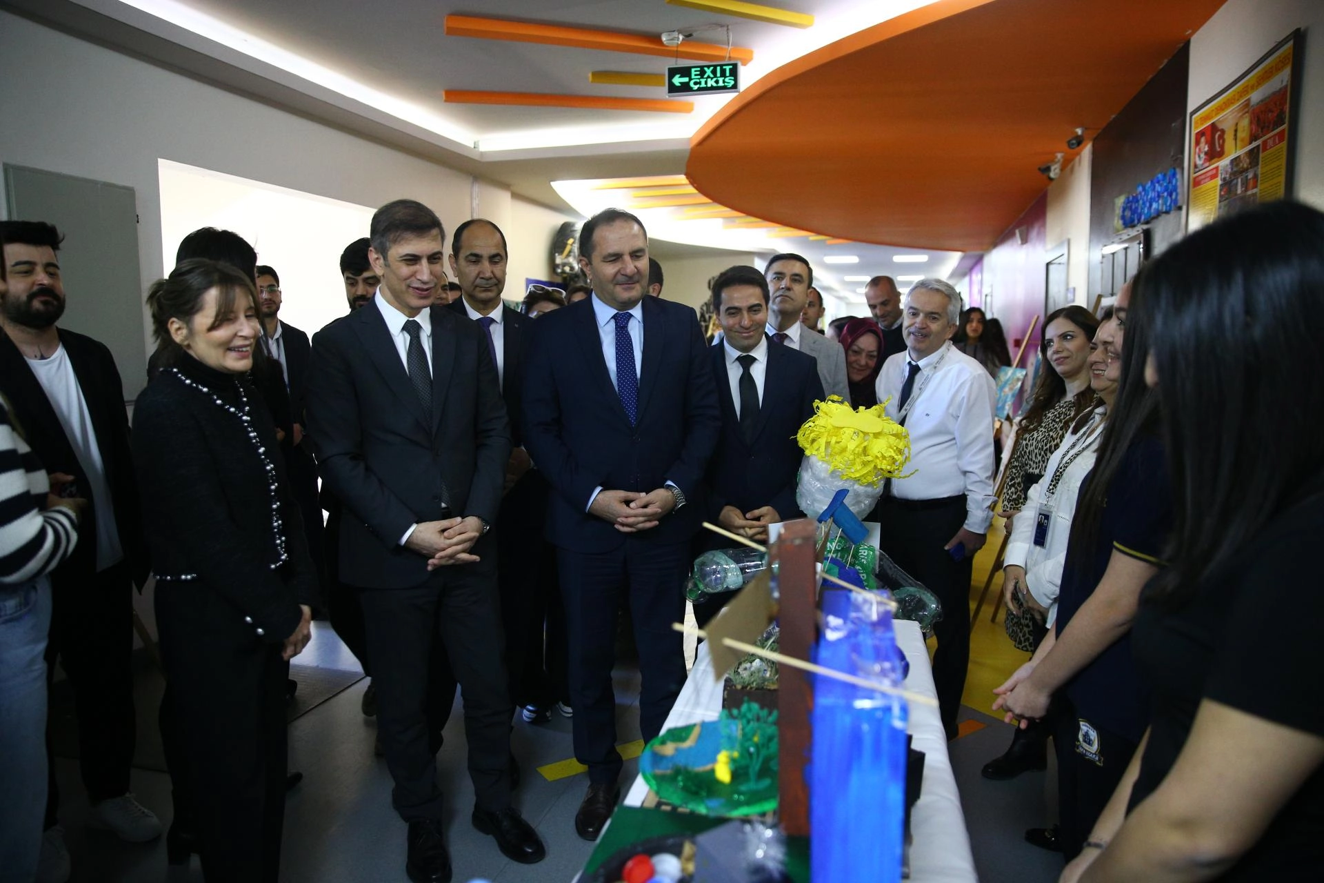 Etkinliğe katılan Yüreğir Kaymakamı Mehmet Aksu, Seyhan İlçe Milli Eğitim Müdür Murat Çelik, okulun kurucusu Filiz Kepme ve öğretmenler, öğrencilerin çalışmalarını inceledi.
