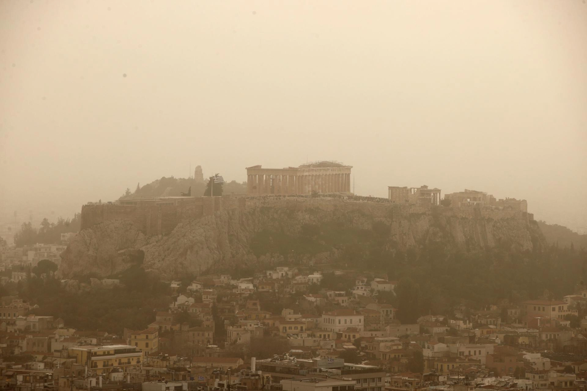 Toz nedeniyle, Akropolis tapınağının dahi görünürlüğü azaldı.
