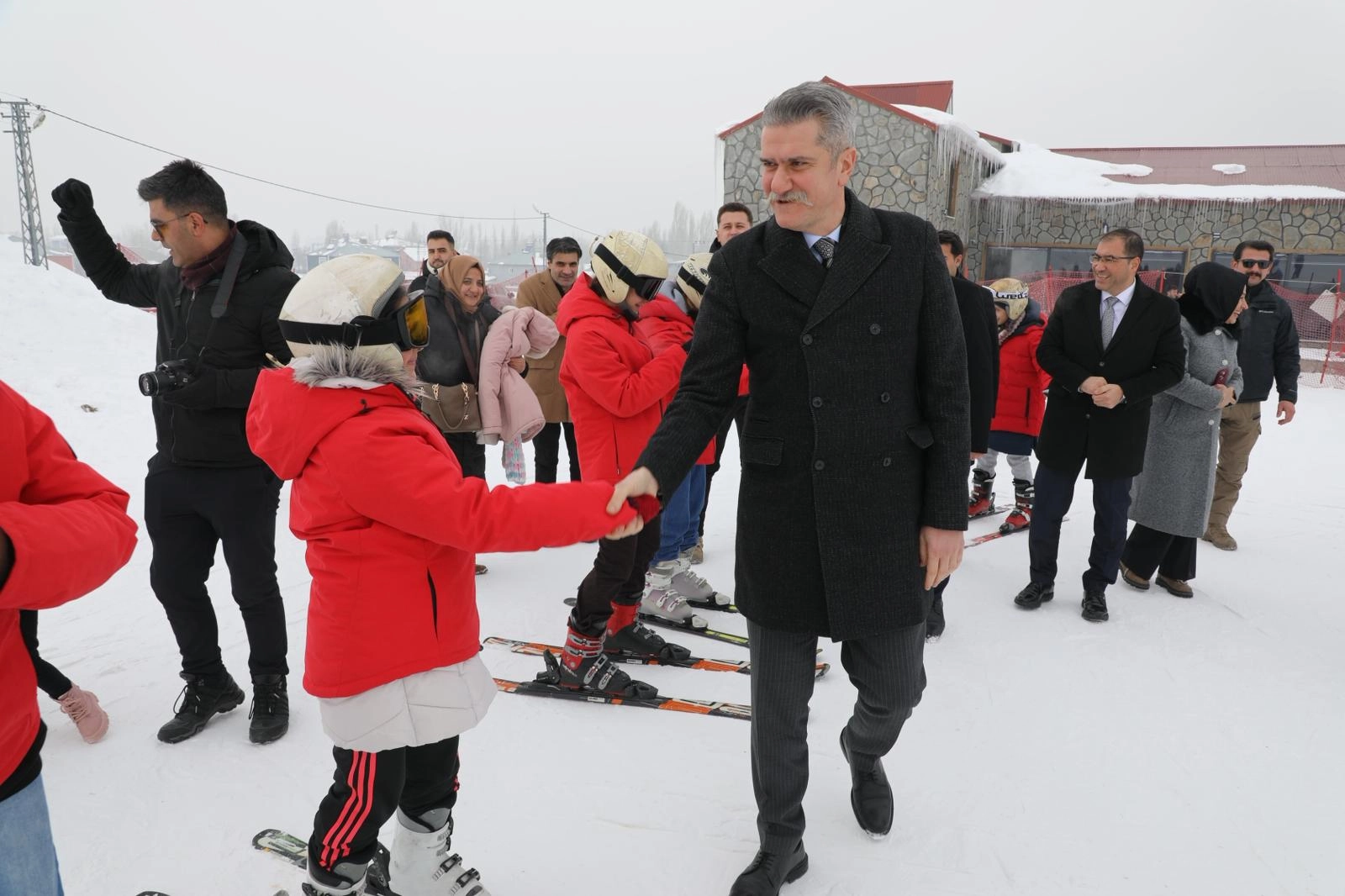 Küpkıran Kayak Merkezi'nde düzenlenen projenin açılışına katılan Başsavcı Çalış, Gençlik ve Spor İl Müdürü Ahmet Çelebi, Gençlik ve Spor İl Müdürlüğü Spor Hizmetleri Müdürü Cemil Budak, çocuklarla bir araya geldi.