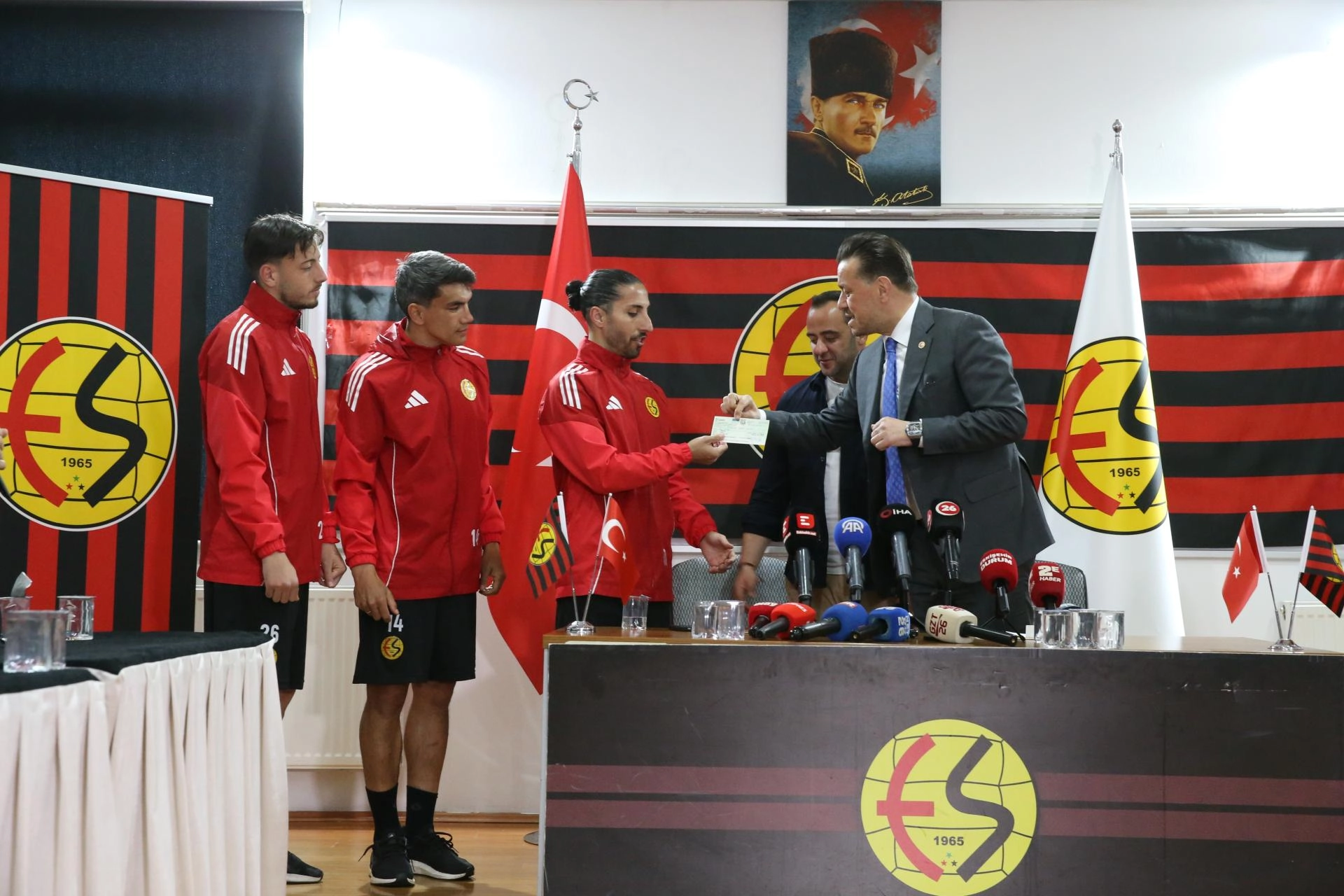 Hatipoğlu, takımın şampiyon olması durumunda 15 milyon lira prim verileceğini aktararak, "Bunun 5 milyon lirasını bugün ben takdim ettim. Şehrin diğer seçilmişleri, atanmışları ve Eskişehir'in ileri gelenlerinden bu 15 milyon liranın tamamlanması için kampanya başlatıyorum. Oda ve organize sanayi bölgesi başkanlarıyla görüştüm. Hepsinden de olumlu yanıt aldım. İnşallah, bugünkü başlangıçla birlikte onlar da yarın itibarıyla bu açıklamaları yapacaktır." diye konuştu.