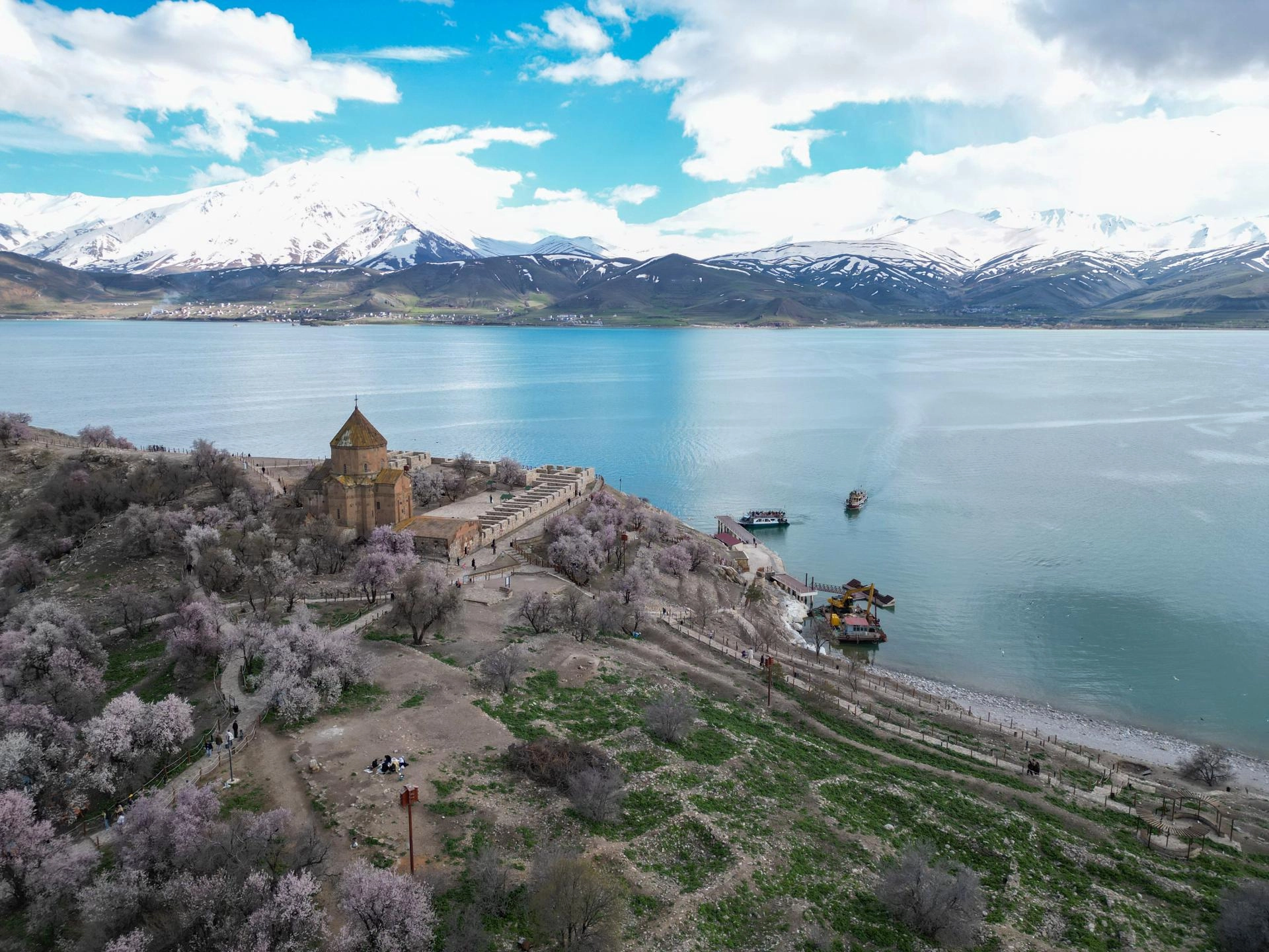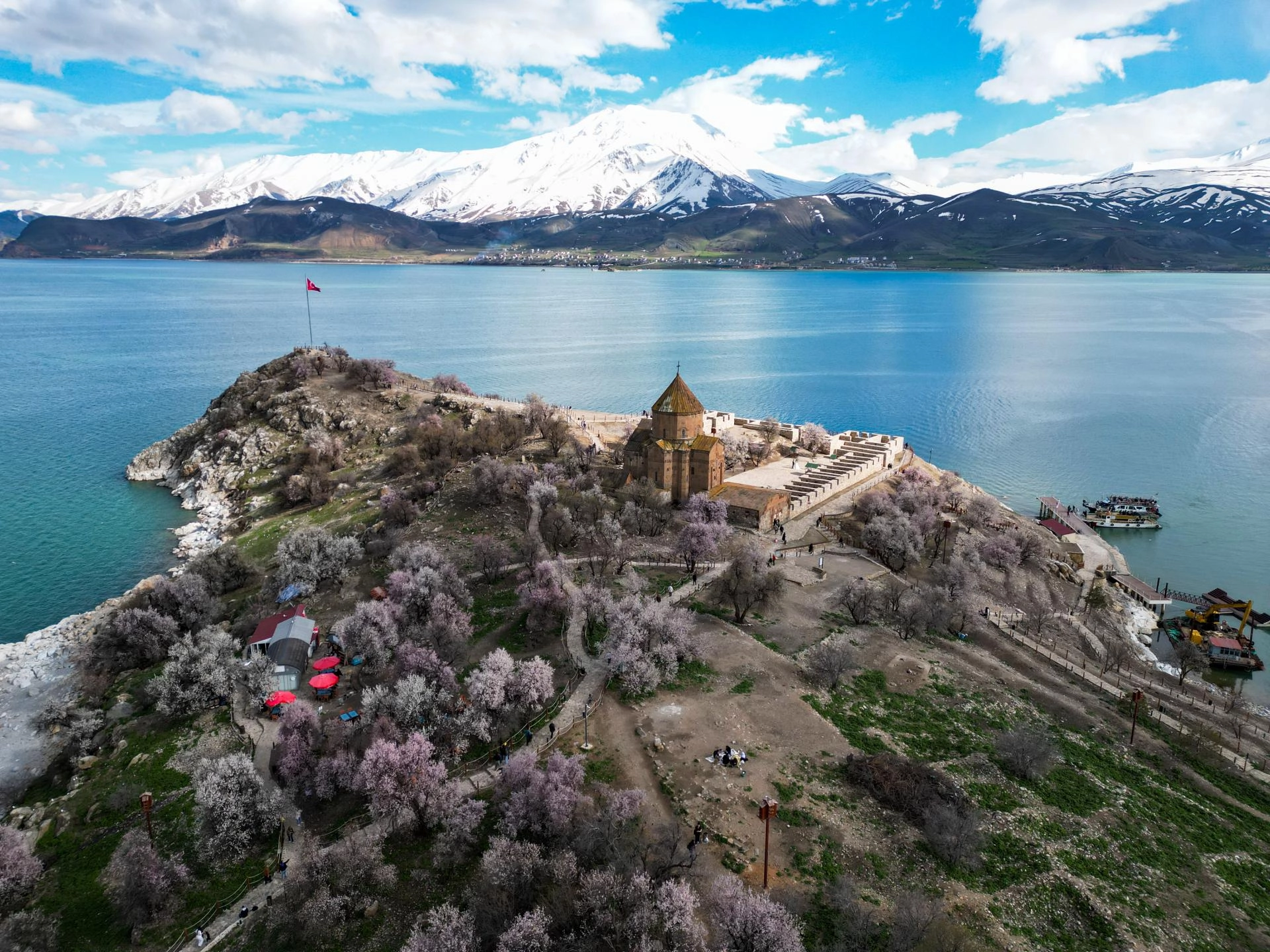 Yılın her döneminde farklı manzarasıyla insanları cezbeden Akdamar Adası, bugünlerde de Van Gölü'nün ve gökyüzünün maviliği ve çiçek açan badem ağaçlarıyla ziyaretçilerini ağırlıyor.