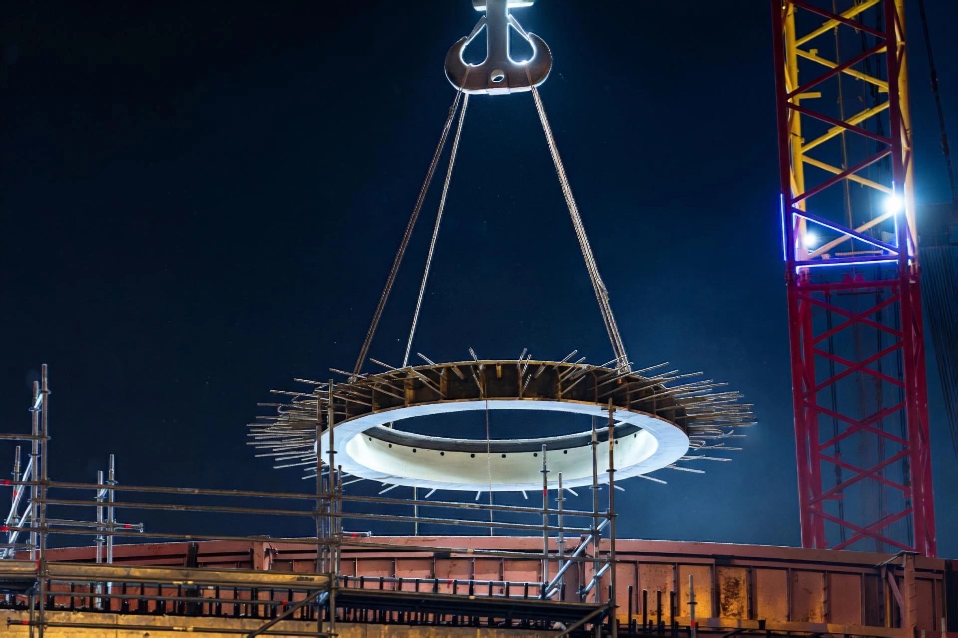 Reaktör şaftının temel yapısal unsurlarından biri olan baskı kirişi, reaktör basınç kabının güvenli bir biçimde sabitlenmesini sağlıyor. Kirişin tasarım konumuna yerleştirilmesinin ardından reaktör şaftı özel bileşimli betonla doldurulacak.