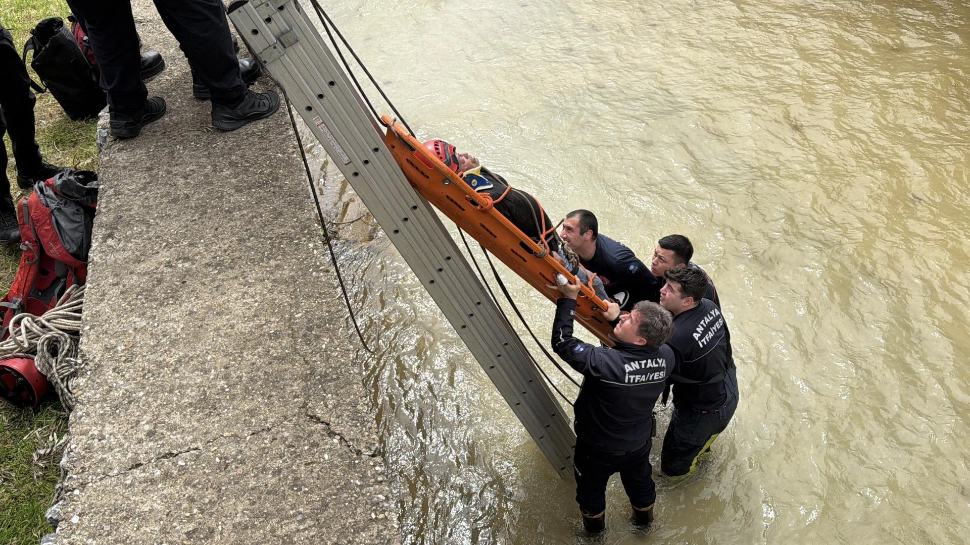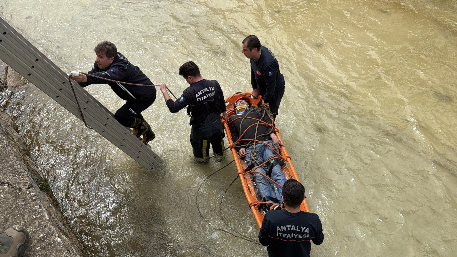 Alanya'da çaya düşen kişiyi itfaiye kurtardı