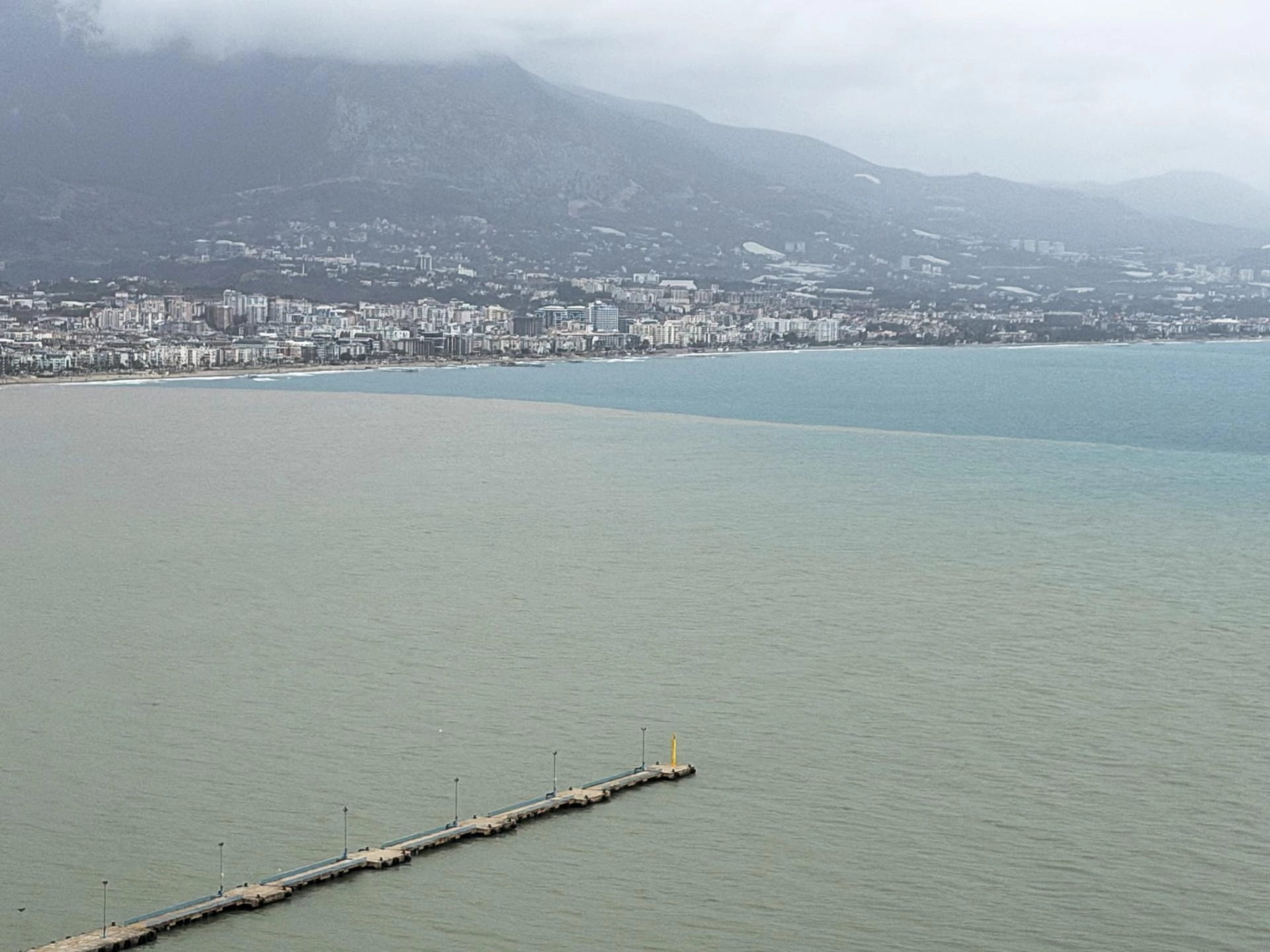 Alanya'da sağanak sonrası denizin rengi değişti
