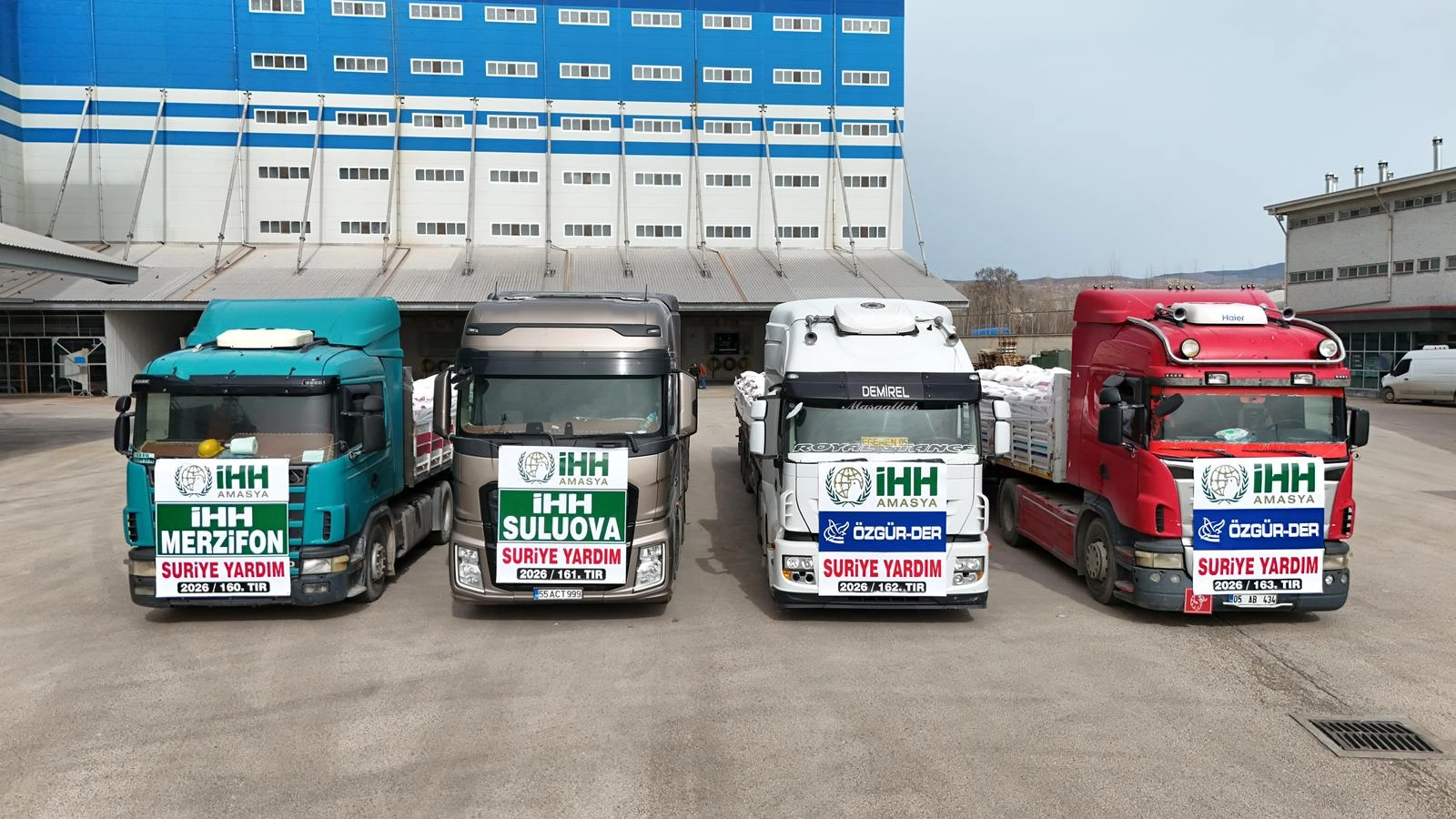 Amasya İHH İnsani Yardım Derneği Serdal Benli, Suluova ilçesindeki törende, Özgür-Der ile omuz omuza vererek hayır köprüsü kurduklarını belirterek, "Tırlarımızla 122 ton un, 5 ton peynir, 750 çift ayakkabı ve halkımızın bağışladığı muhtelif giyim malzemelerini ulaştırıyoruz. Bu birliktelik, Amasya'nın mazluma sahip çıkma kararlılığının göstergesidir." dedi.