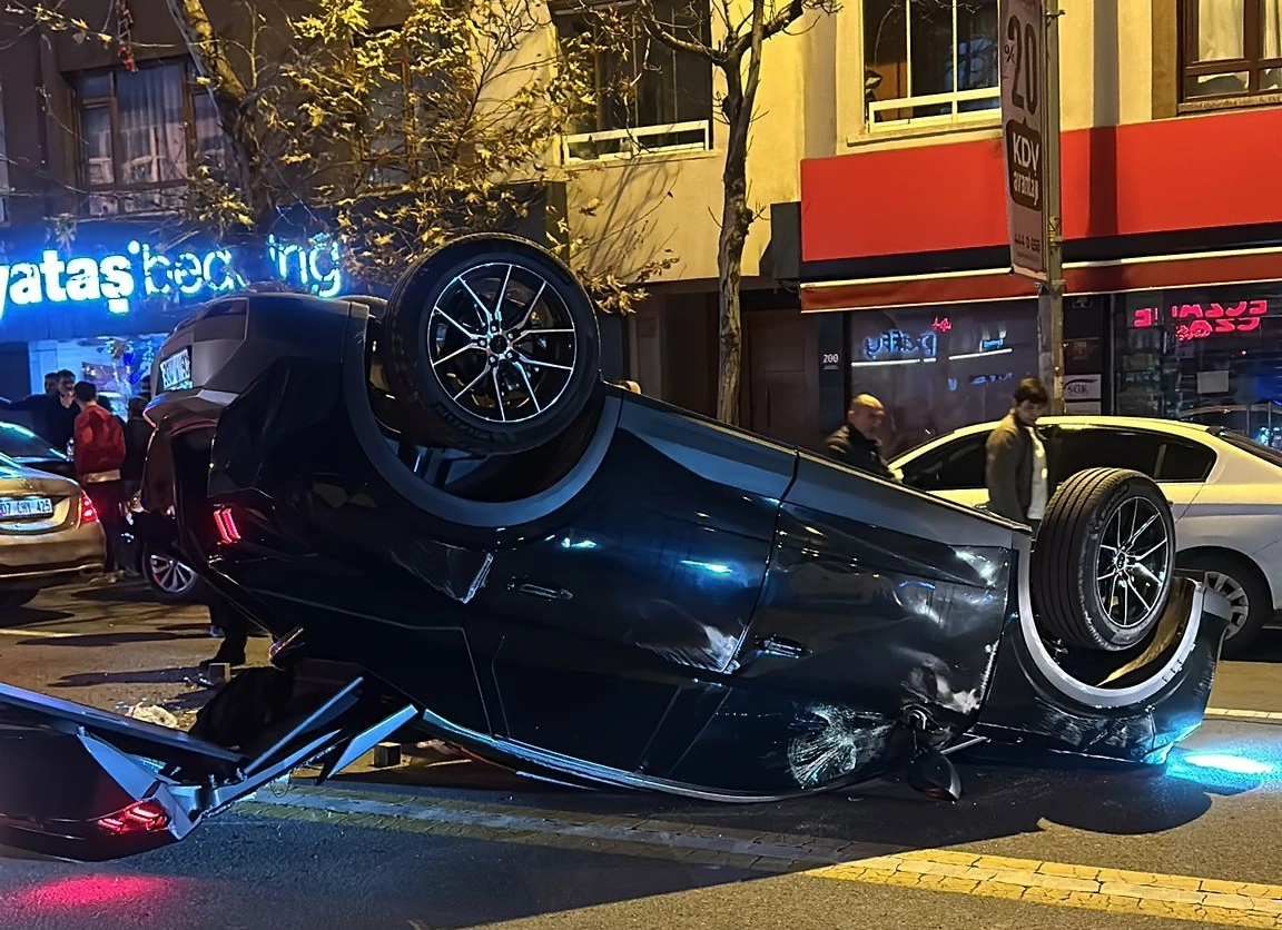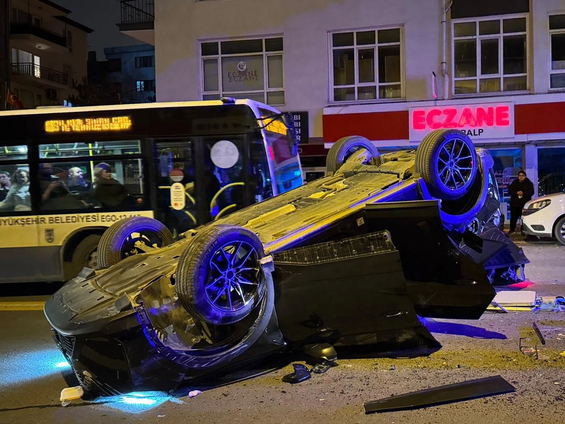 Takla atan araçtaki kişiler kazayı yara almadan atlatırken, 06 BBD 454 plakalı araçta bulunan İ.Y. yaralandı.