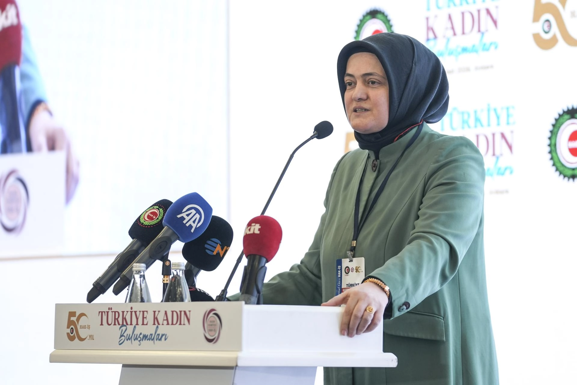 Kadın çalışanların hak ettikleri çalışma şartları ve ücret için mücadele edeceklerini söyleyen Arslan, "Biz HAK-İŞ'i kadın ve erkek birlikte geleceğe taşıyacağız. Hayallerimizi birlikte gerçekleştireceğiz. Ülkemiz için, dünya için istediklerimizi, beklentilerimizi birlikte inşa edeceğiz." ifadesini kullandı.