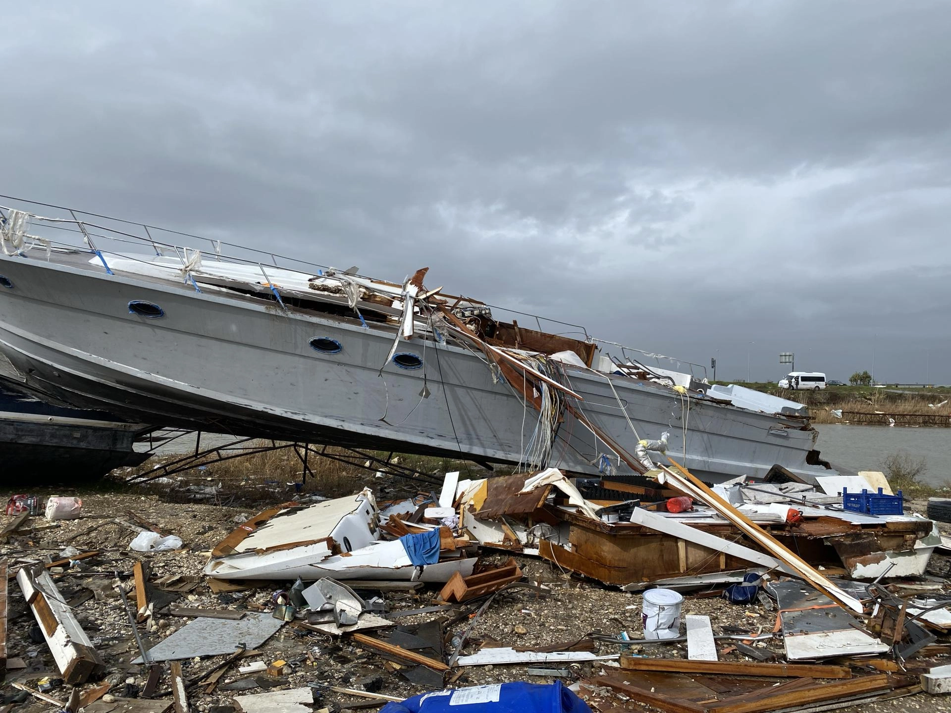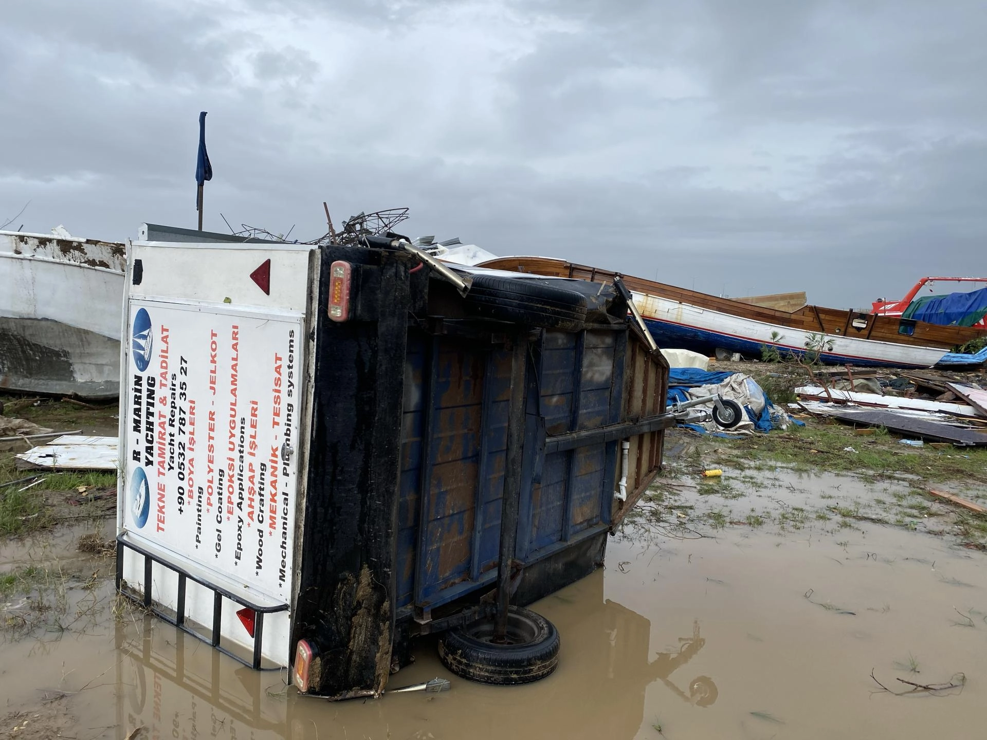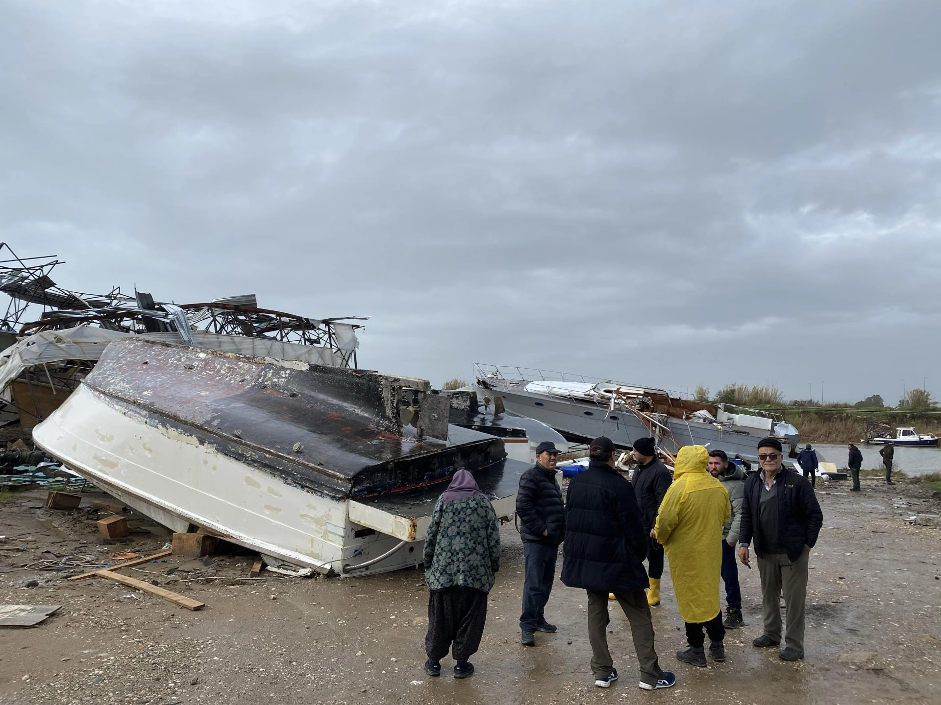 Yağıştan dolayı su baskınları ve taşkınların yaşandığını belirten Şahin, "Dün akşam yoğun ve şiddetli rüzgar ve bu rüzgarla beraber deniz istikametinden gelen hortumlarla ilçelerimiz sınandı. Çok ciddi zararlar da oldu. Bugün Aksu Çayı'nın kenarındayız. Hortum tekneleri alıp karada bir nevi düğüm yapmış, bir yerden bir yere savurmuş." dedi.