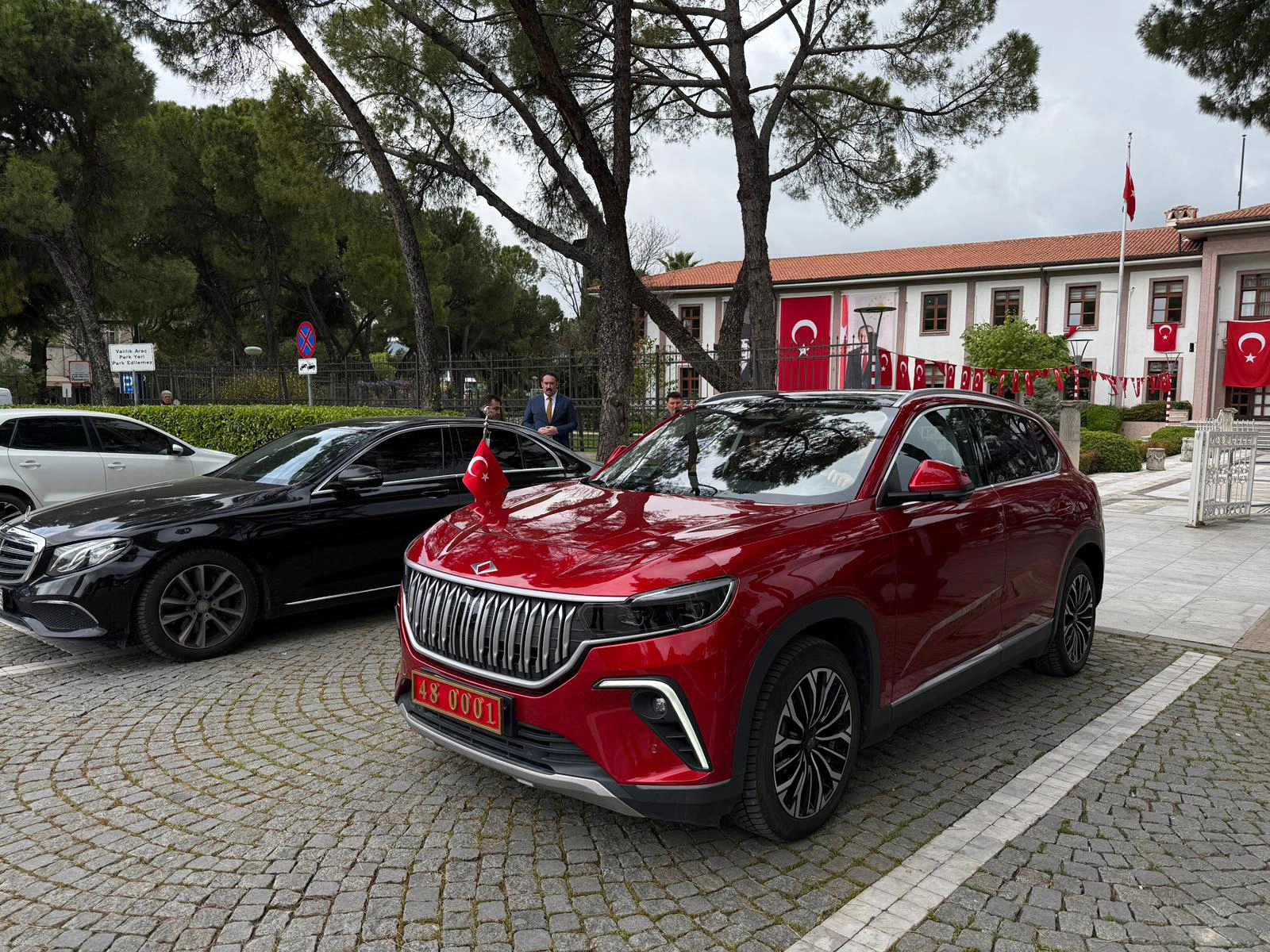 Her iki öğrenci, Dumlupınar İlkokulu bahçesinde devam eden kutlama programına Vali Akbıyık'ın makam aracı yerli ve milli Togg ile gitti.
