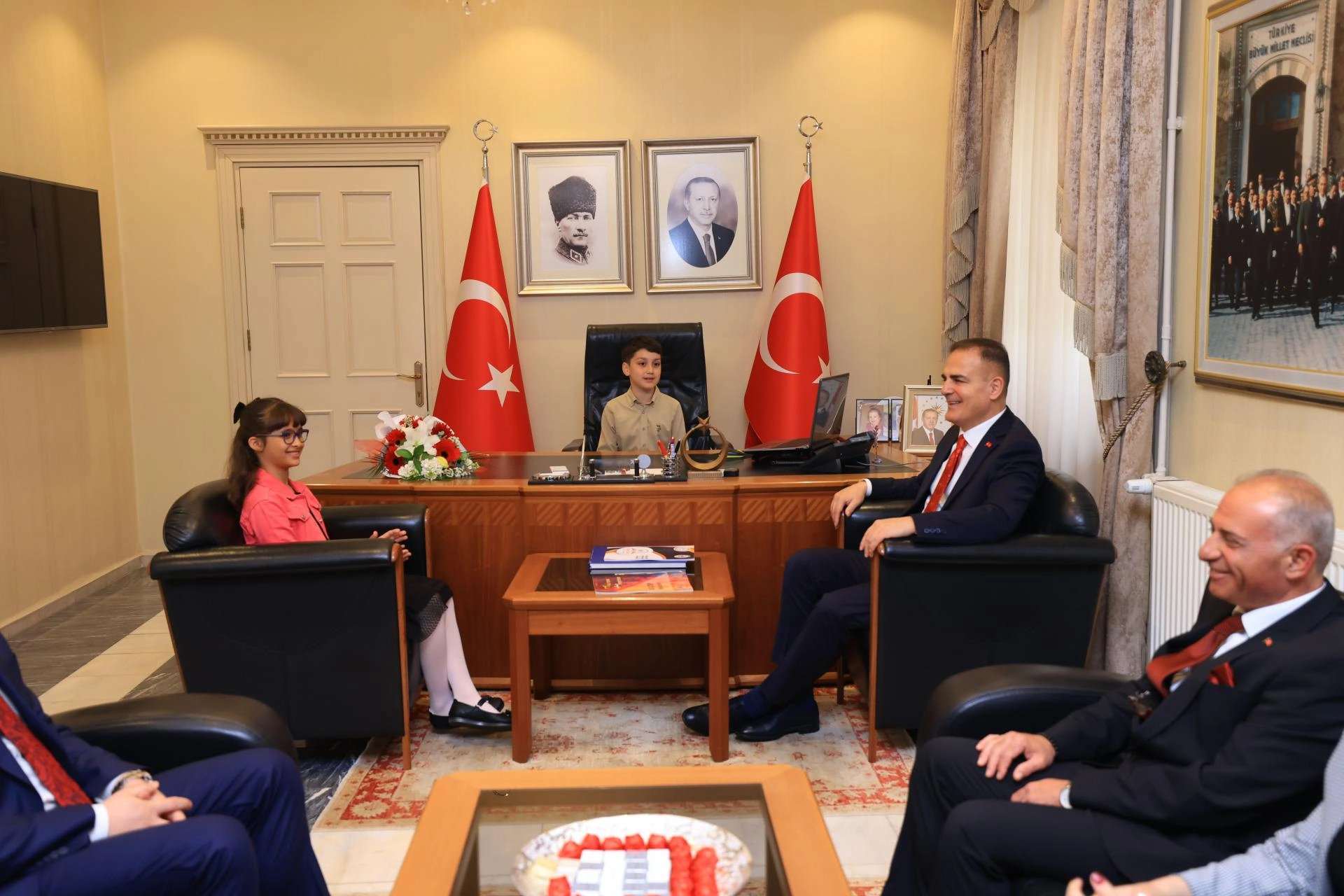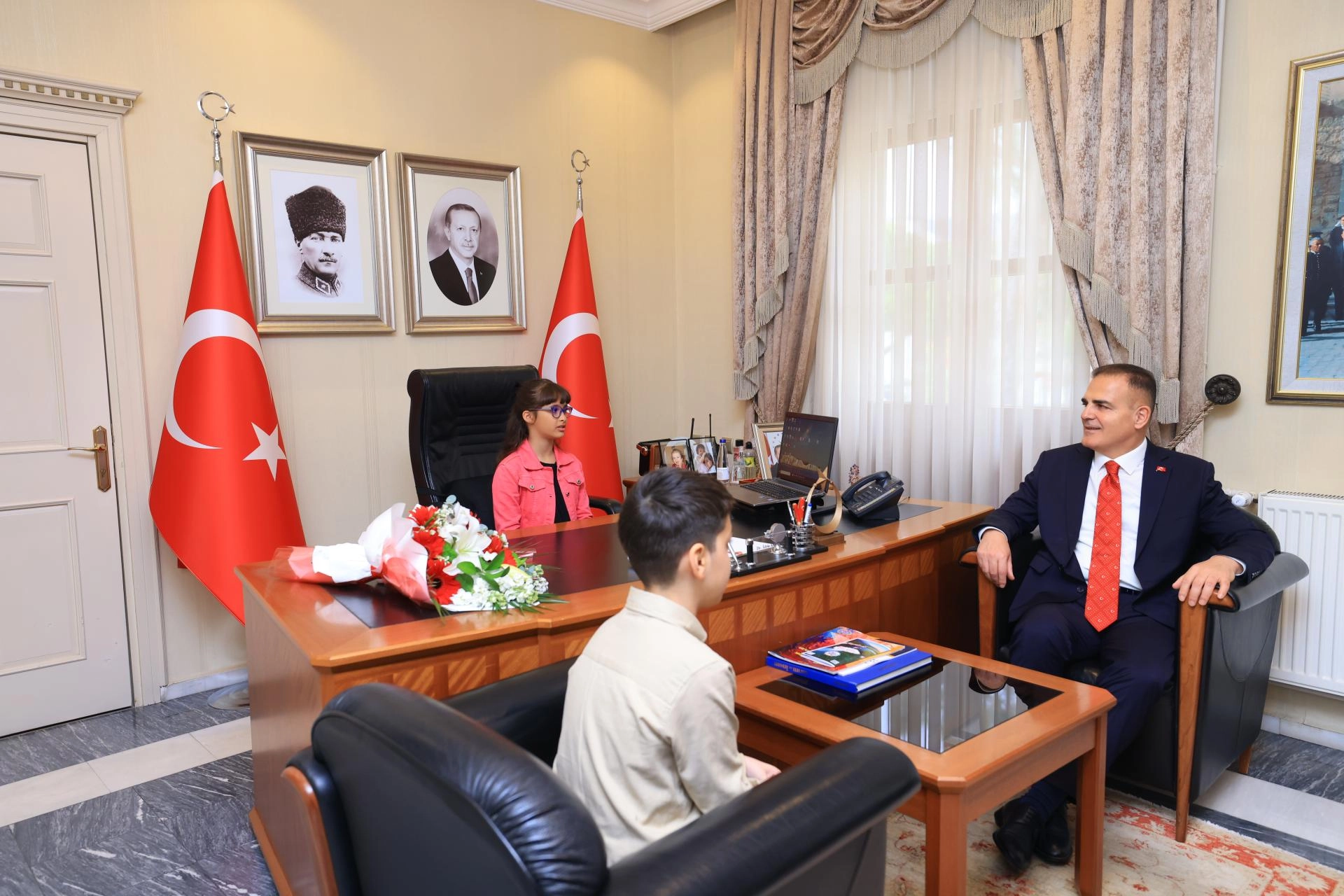 Vali Hulusi Şahin, kutlamalar kapsamında makamını temsili olarak 4. sınıf öğrencisi Nazenin Karsavurdan'a devretti.