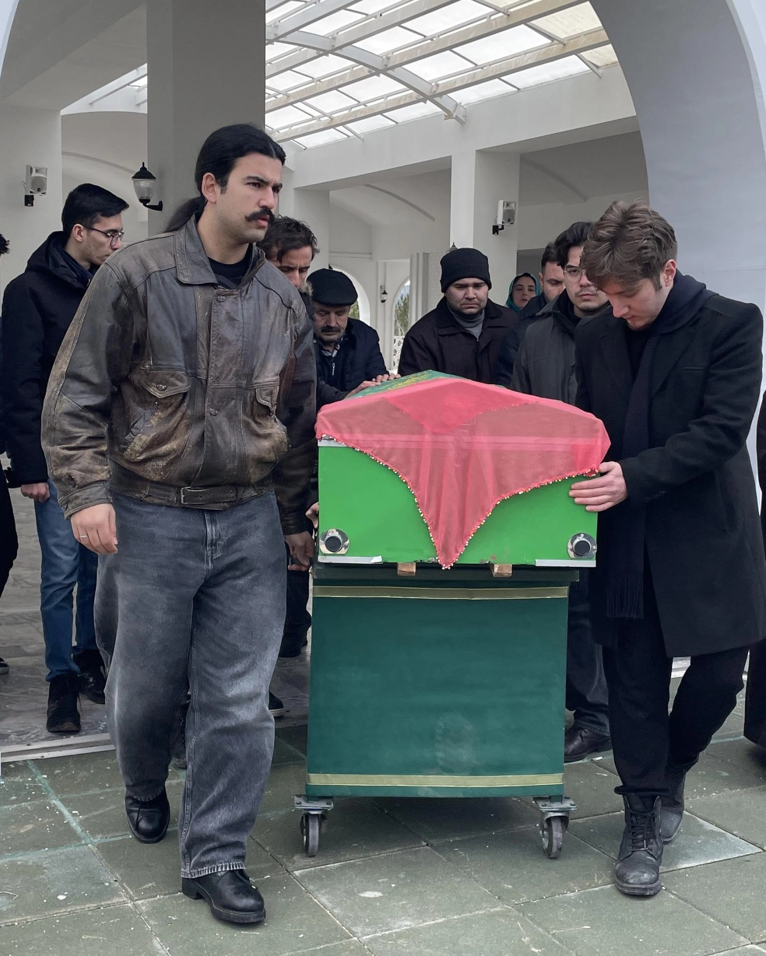 Cenaze töreni öncesi Göktepe'nin yakınları, taziyeleri kabul etti.