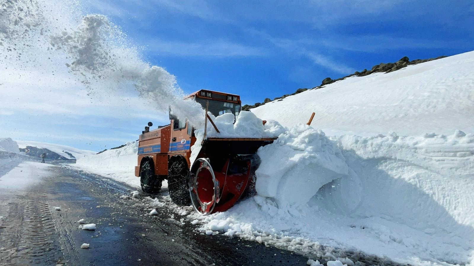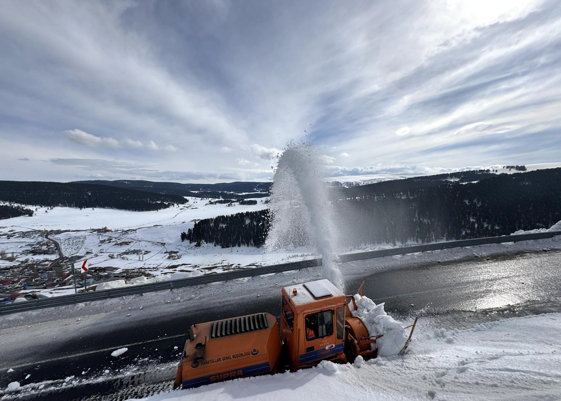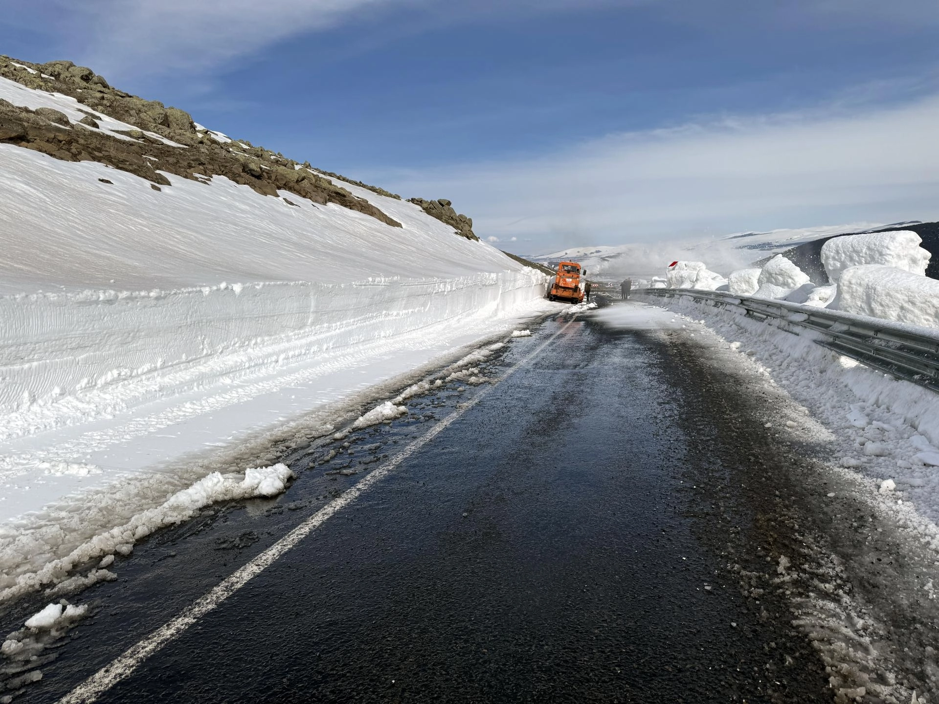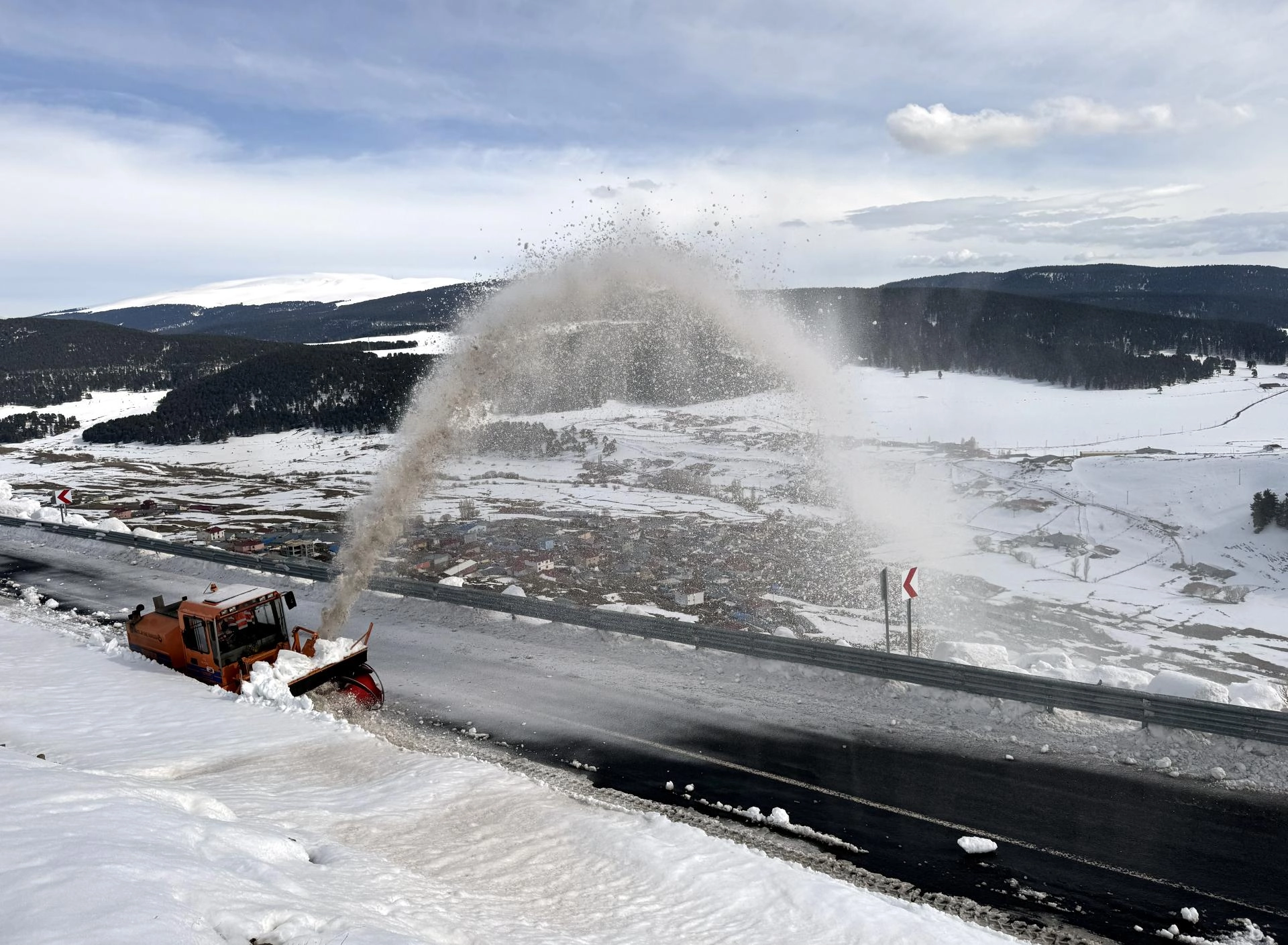 Karayolları 183. Şube Şefliği ekipleri, iş makineleriyle yolun Bağdeşen köyü mevkisindeki 2 bin 581 rakımlı bölgede karla mücadele çalışması başlattı.