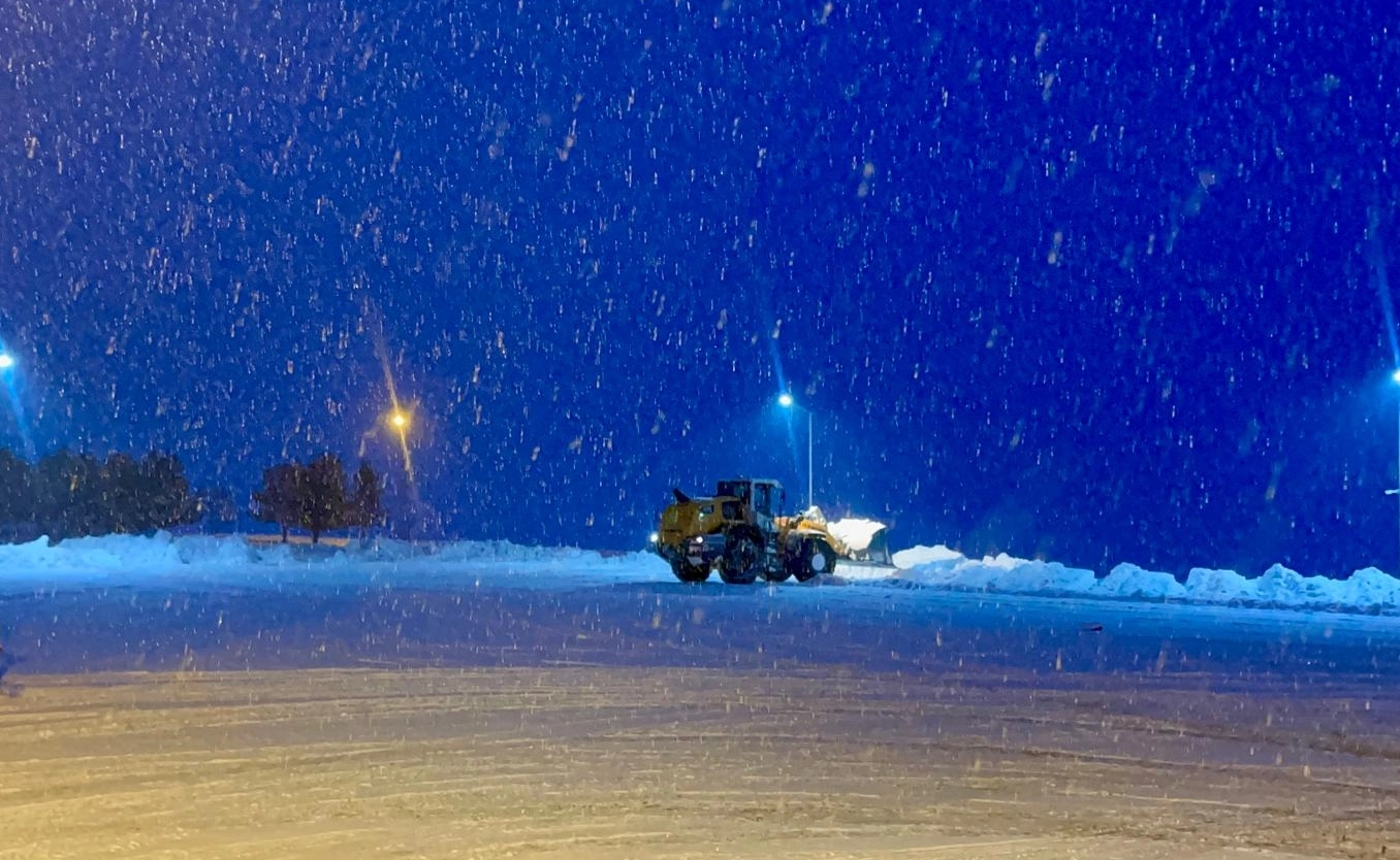 Yolda karla mücadele çalışması başlatan ekipler, sürücülerin tedbirli olmalarını istedi.