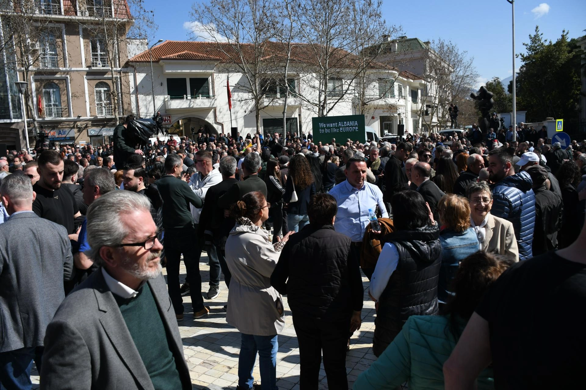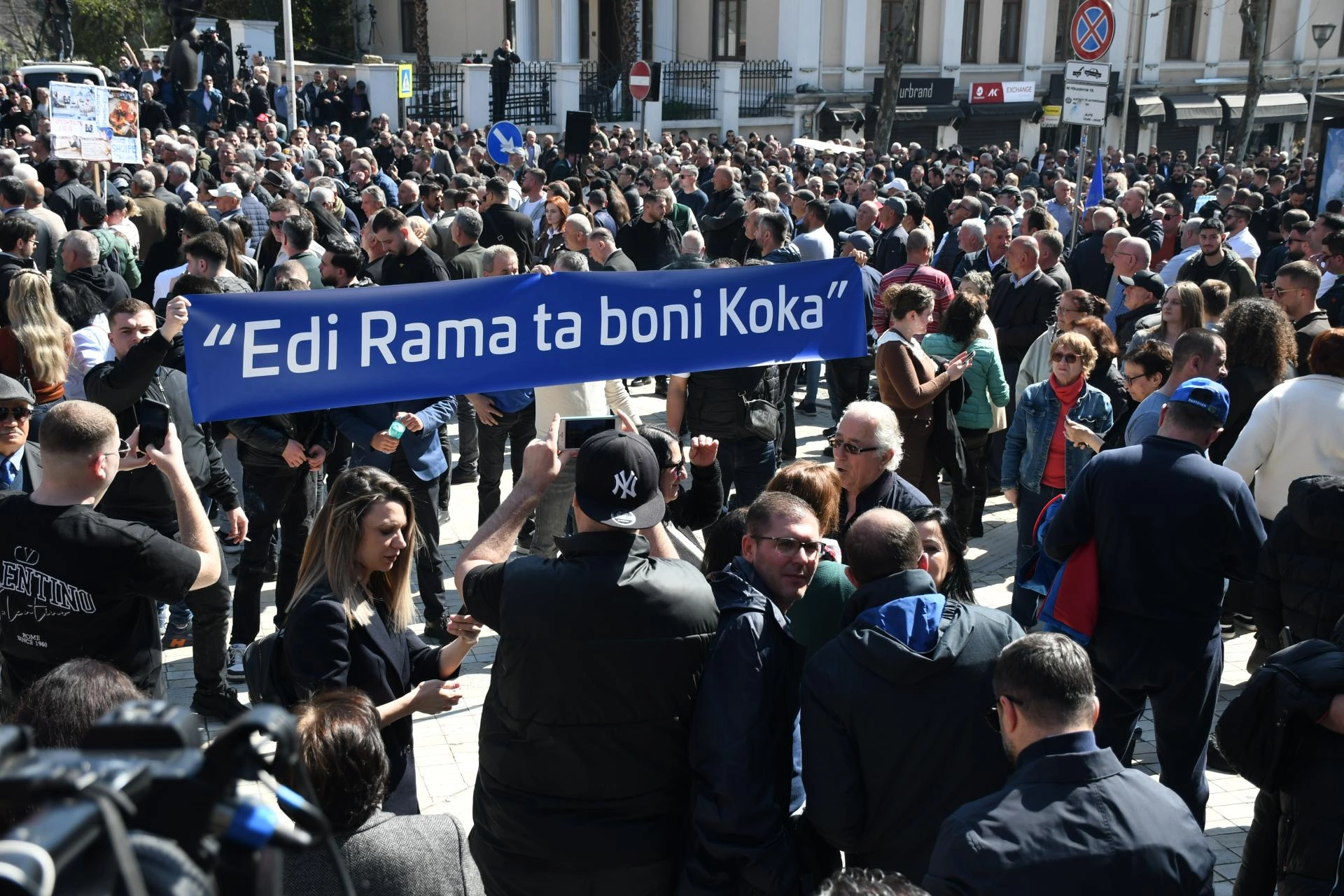 Gösteriye katılan PD Genel Başkanı Sali Berisha, "Anayasa'yı ve insan onurunu savunmak" adına toplandıklarını dile getirdi.